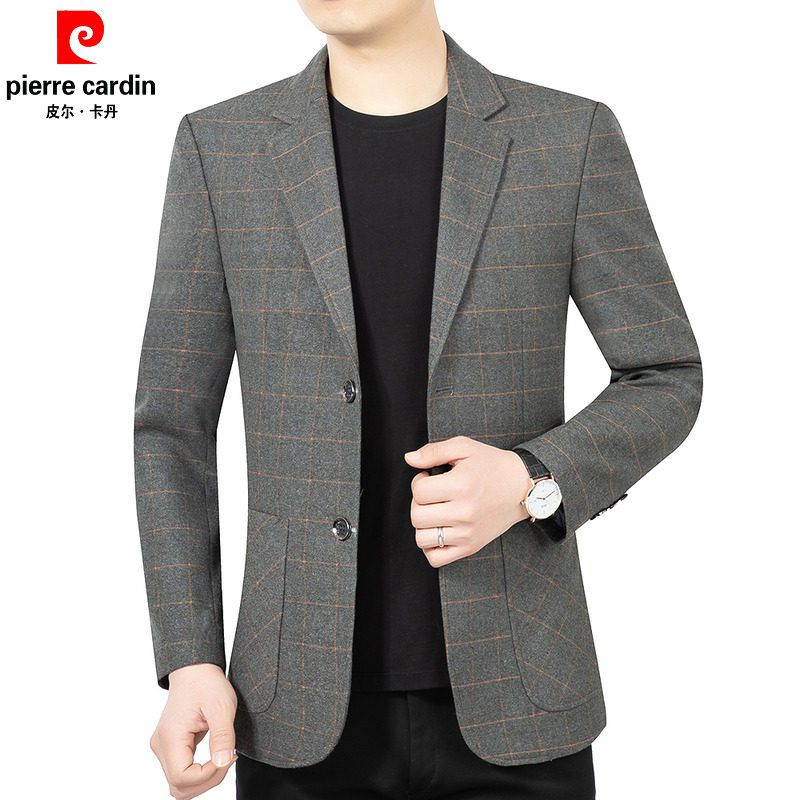 皮尔卡丹男装西服外套春秋新款休闲上衣男士外套品牌高端西装男士