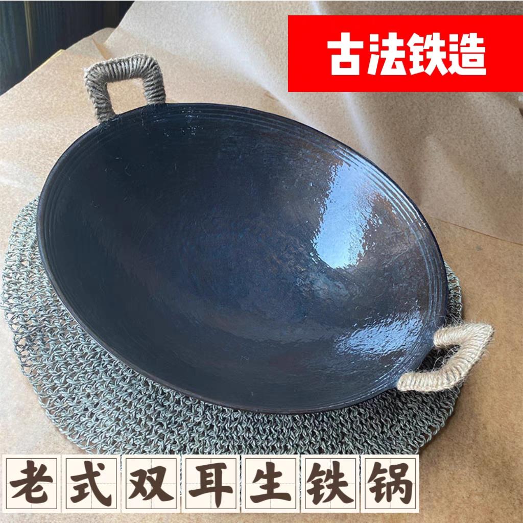 生铁锅老式传统工艺双耳炒锅燃气电磁炉可用不粘锅无涂层干锅火锅