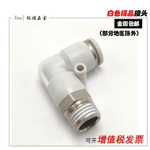 白色气动弯头气管快速快插直角接头PL8-02/4-M5/6-01/10-03/12-04