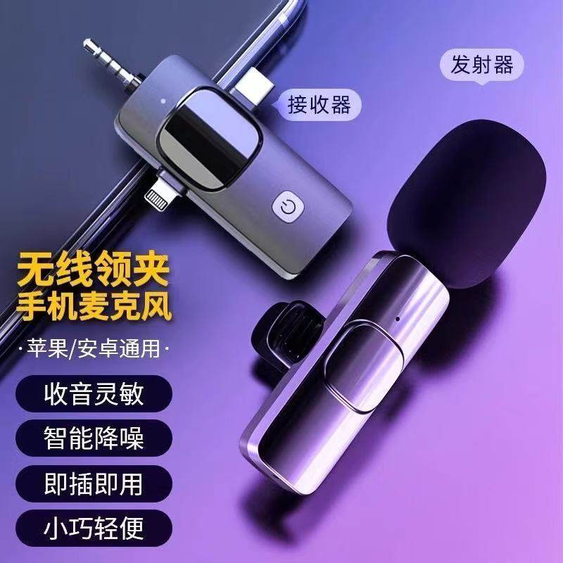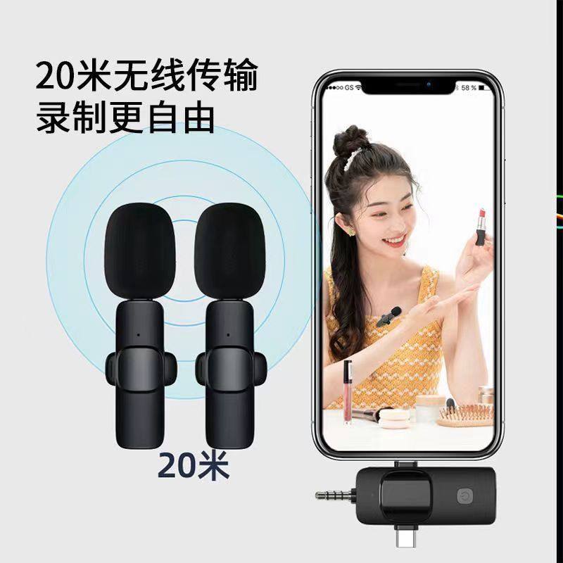 三合一无线麦克风领夹式一拖二直播主播录音设备夹领式麦克风