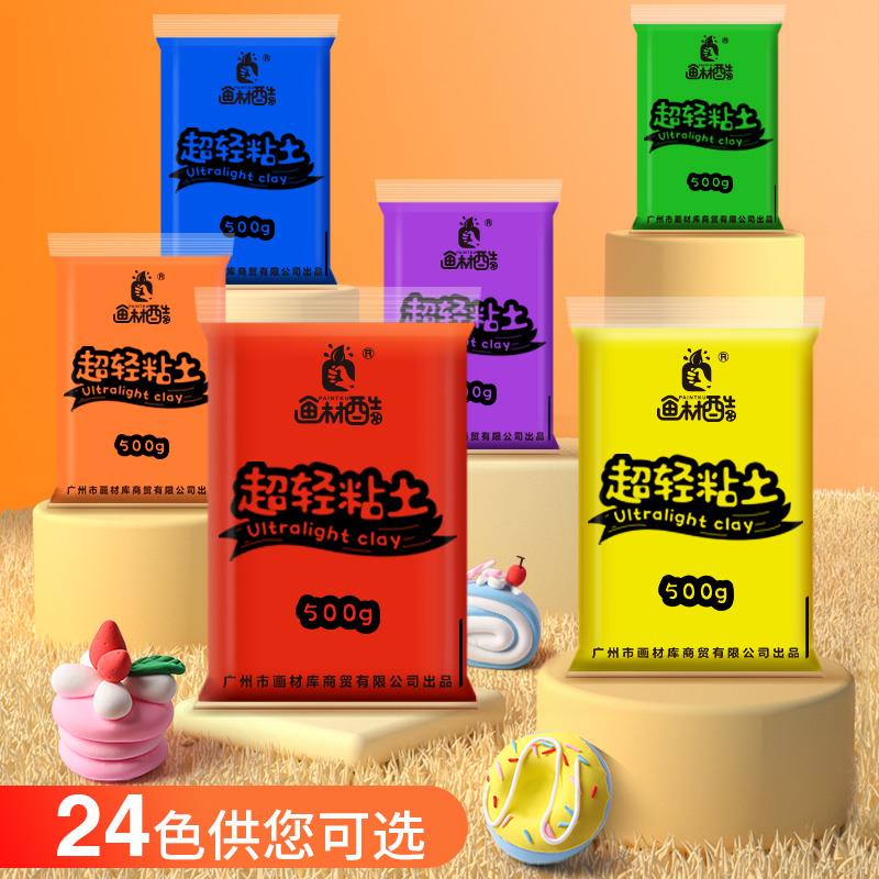 画材酷超轻粘土500g大包装儿童石塑泥塑diy材料包白色彩泥24色12色幼儿园小学生专用手工橡皮泥太空泥黏土36