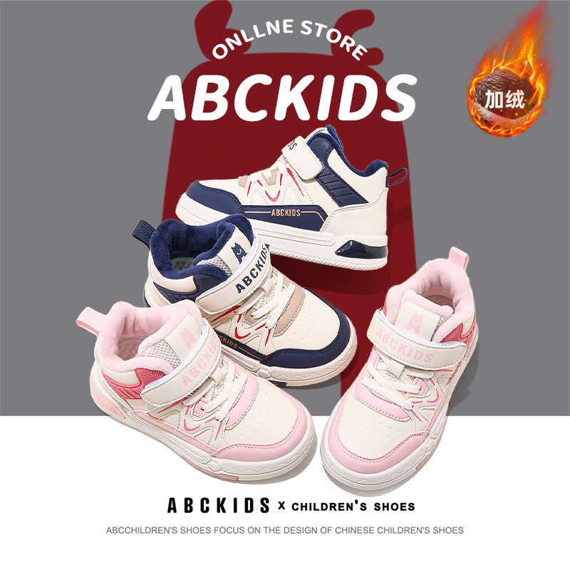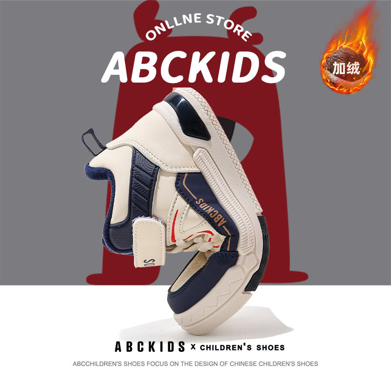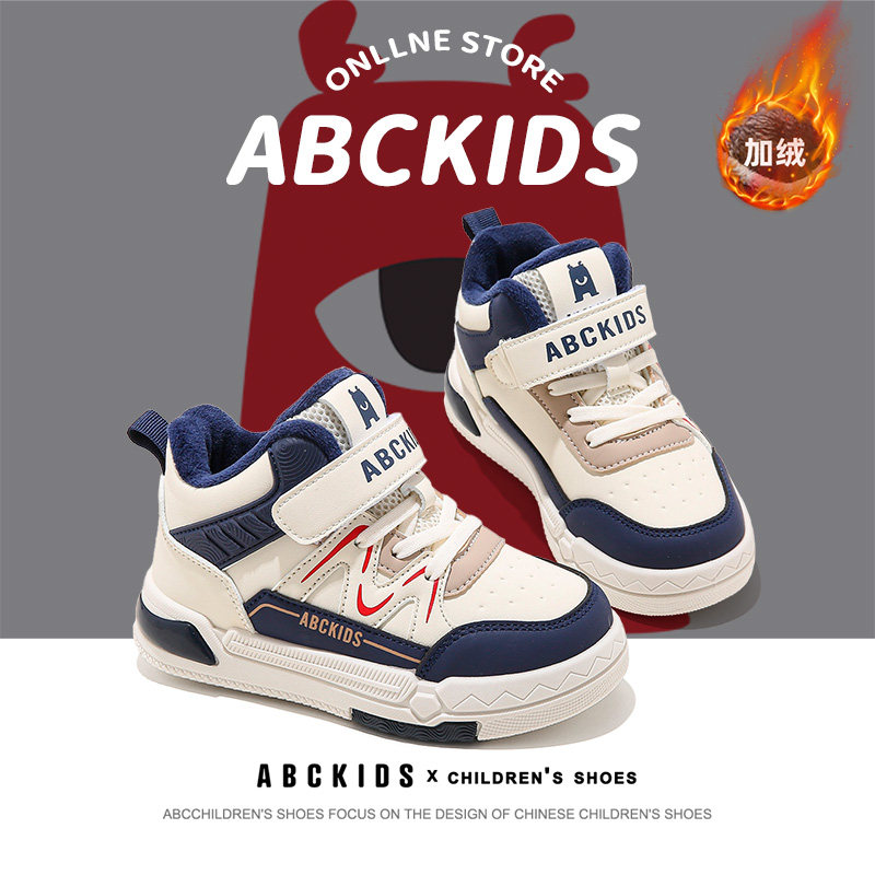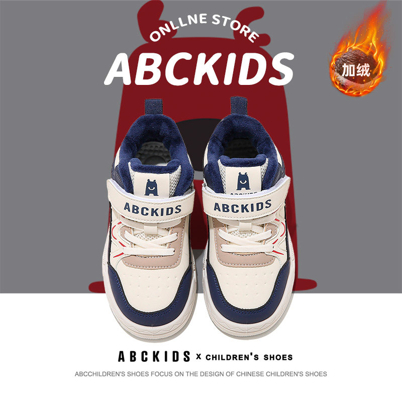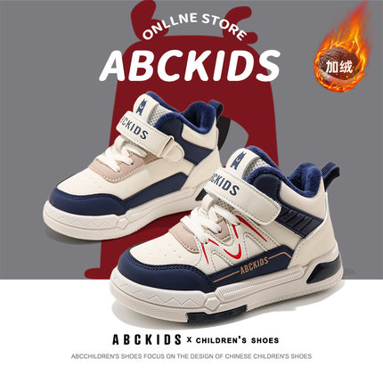 ABCkids童鞋男童运动鞋魔术贴儿童加绒鞋子冬季保暖男孩加绒童鞋