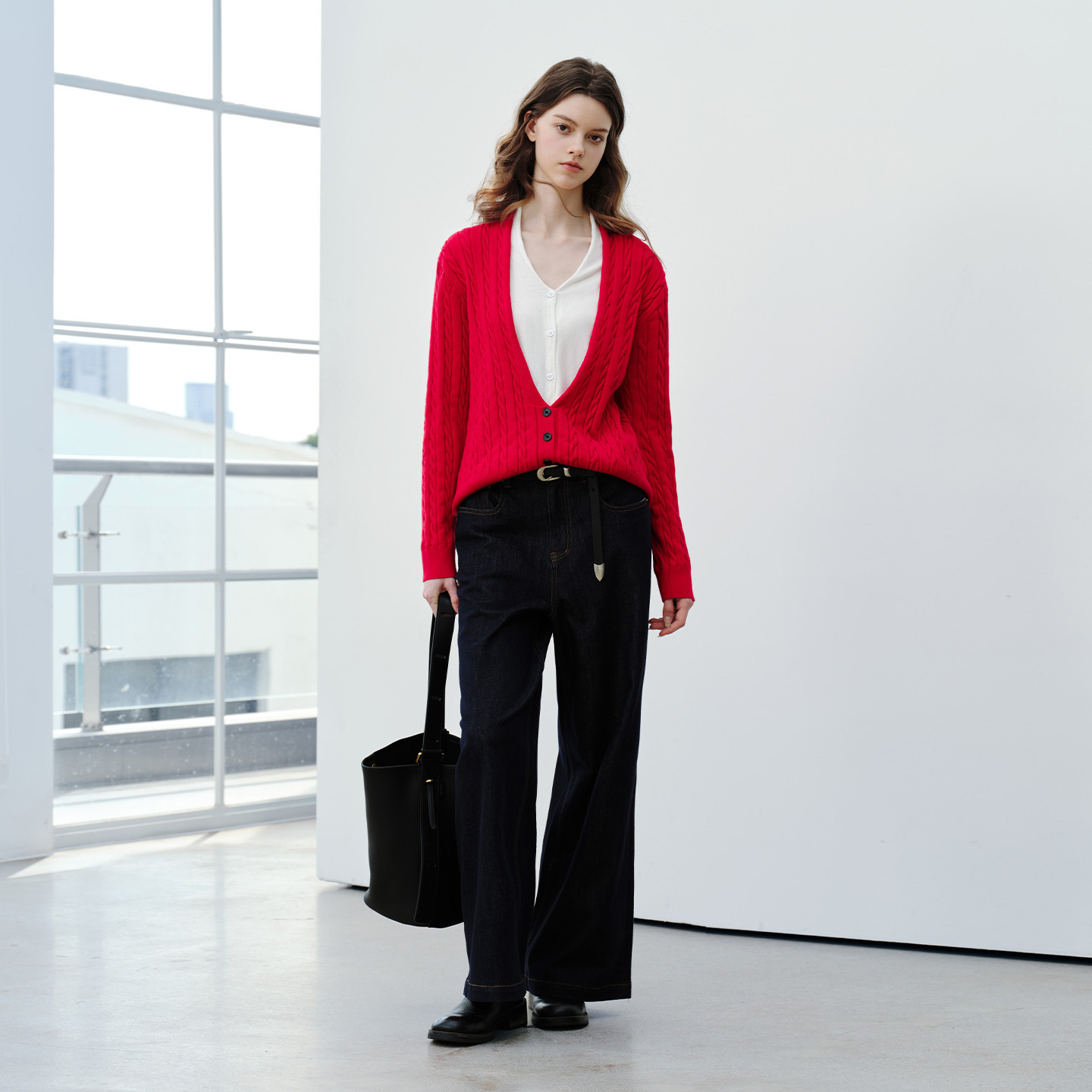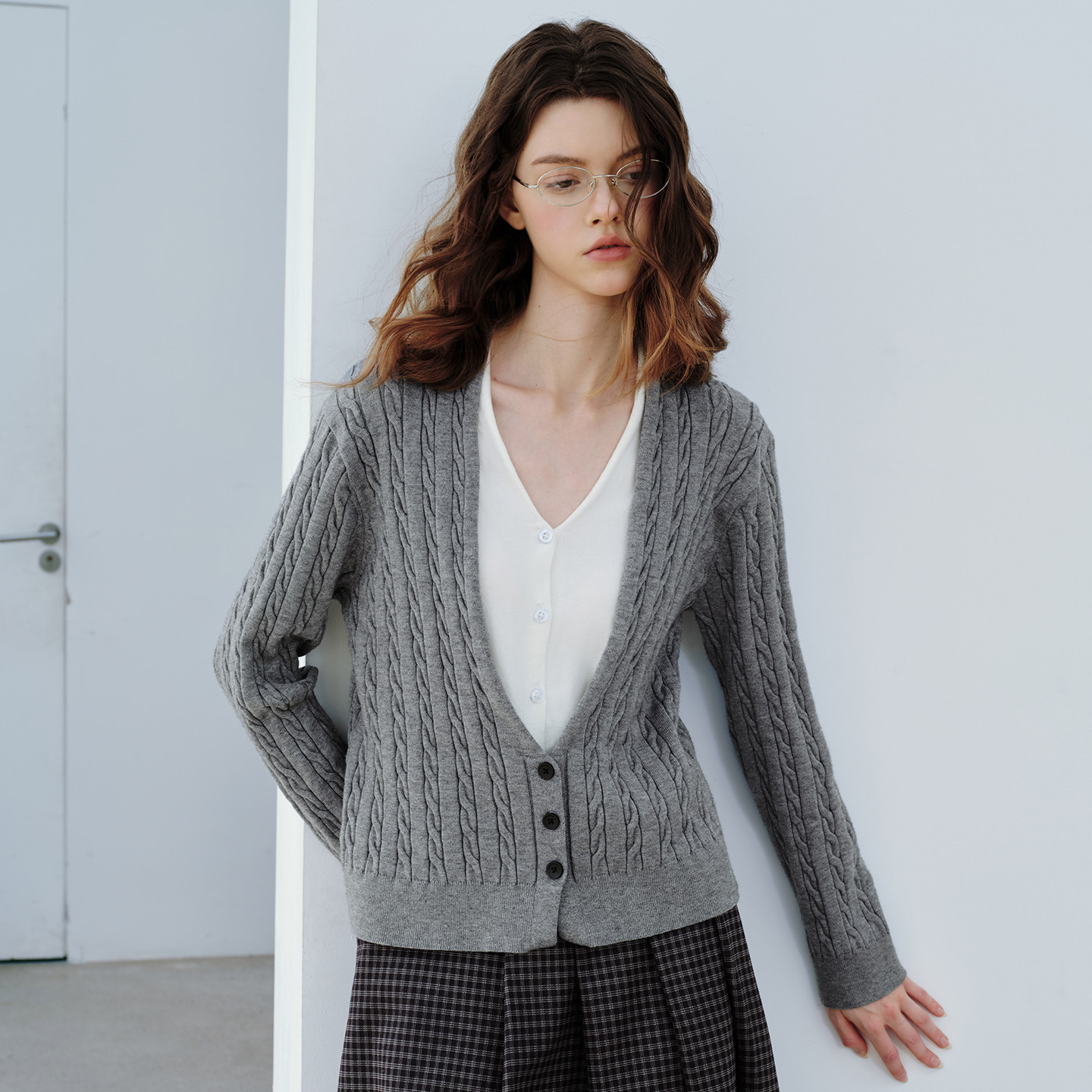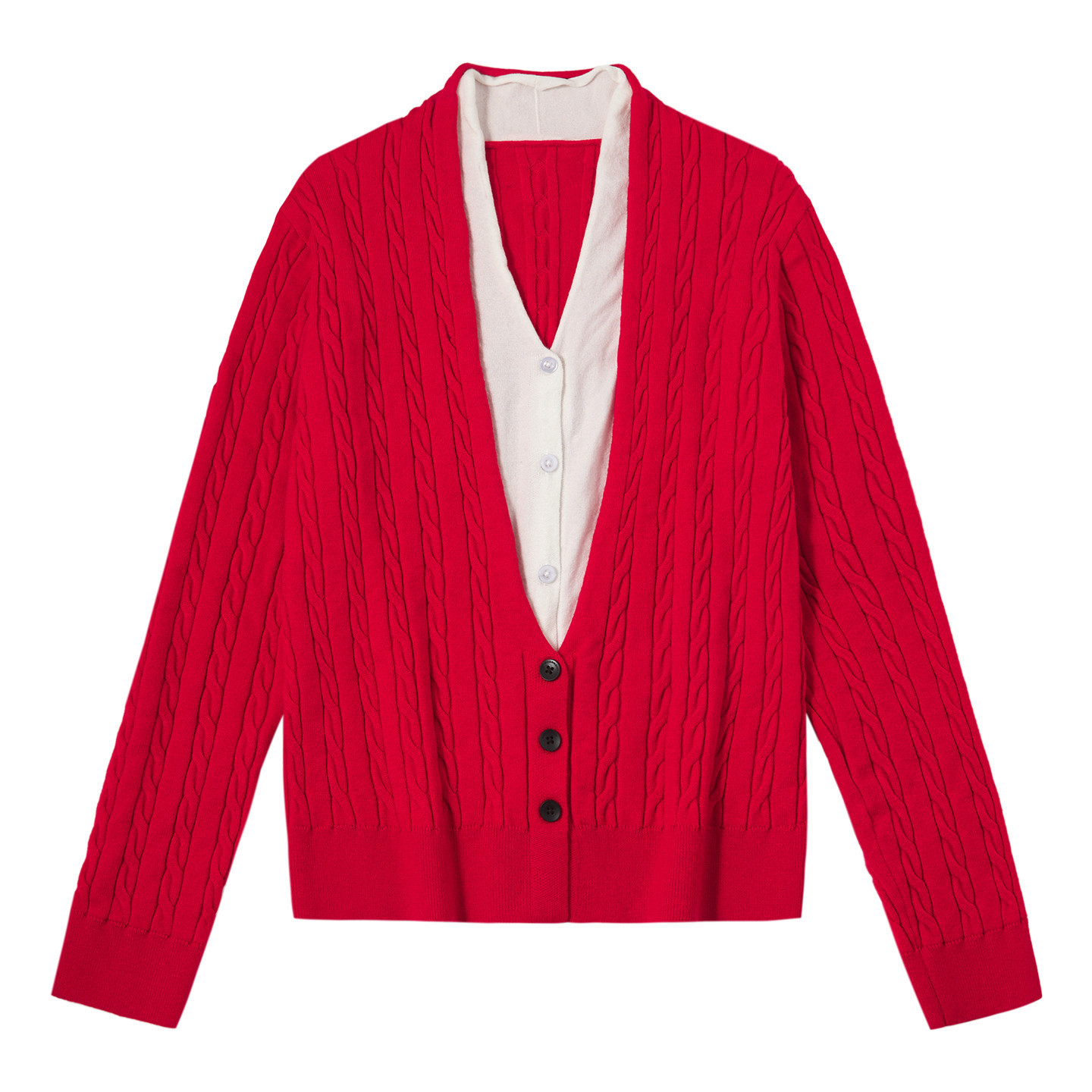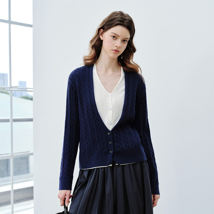 PSO Brand女装假两件长袖毛衣开衫外套女冬季休闲针织上衣毛线衣