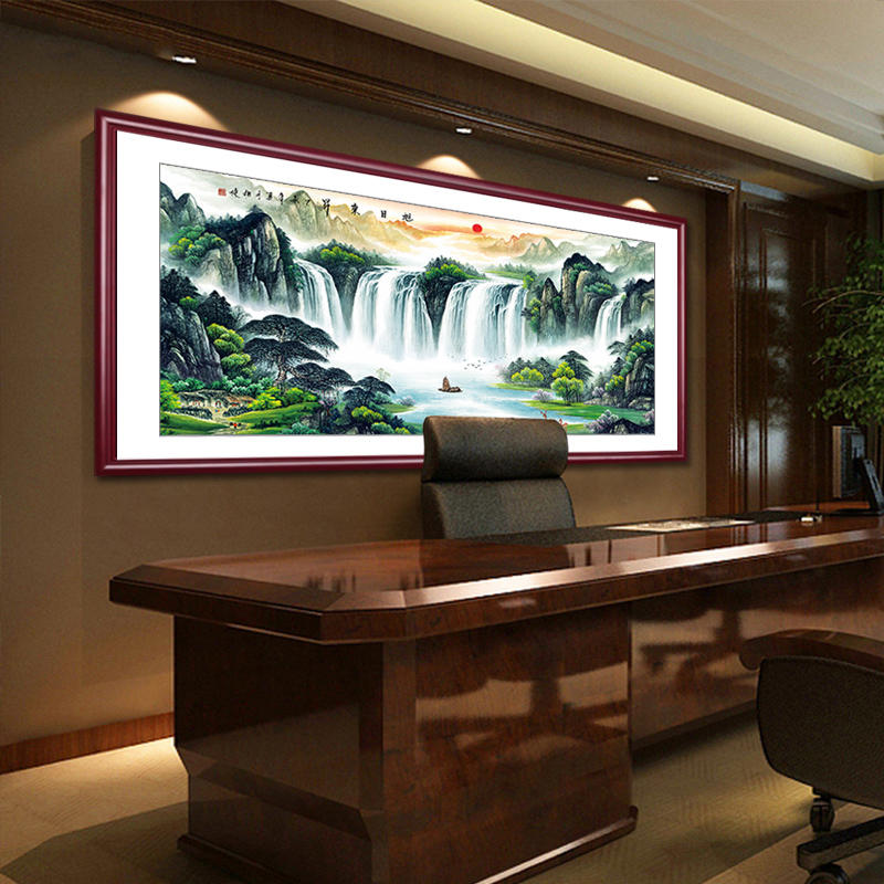 山水挂画客厅装饰壁画办公室招财国画鸿运当头聚宝盆牌匾带框装裱
