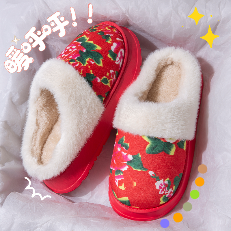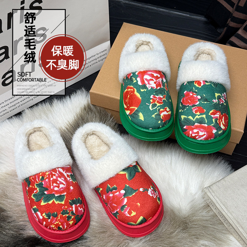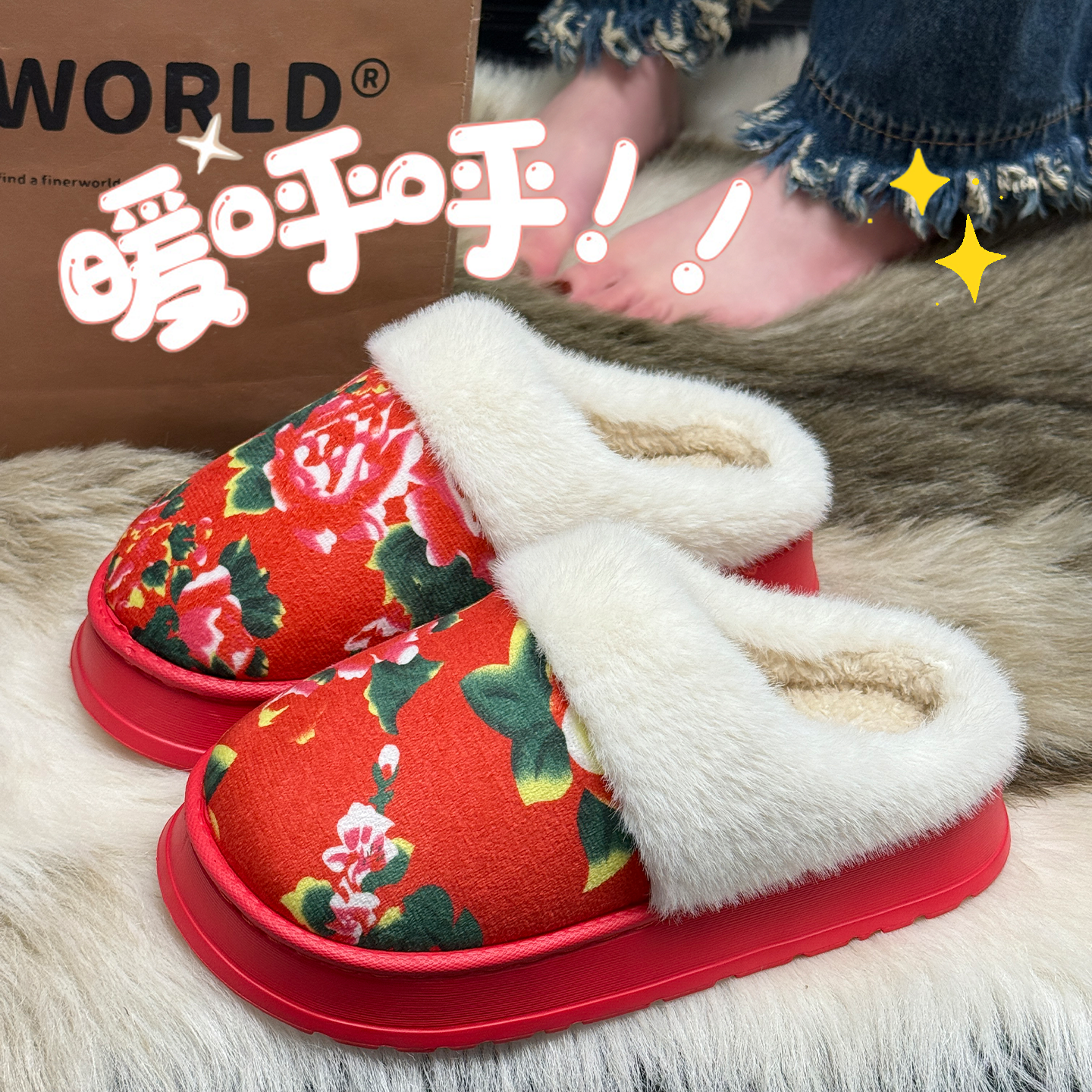 东北花花棉拖鞋女士冬2025新款家居保暖毛绒防滑厚底可外穿棉拖男