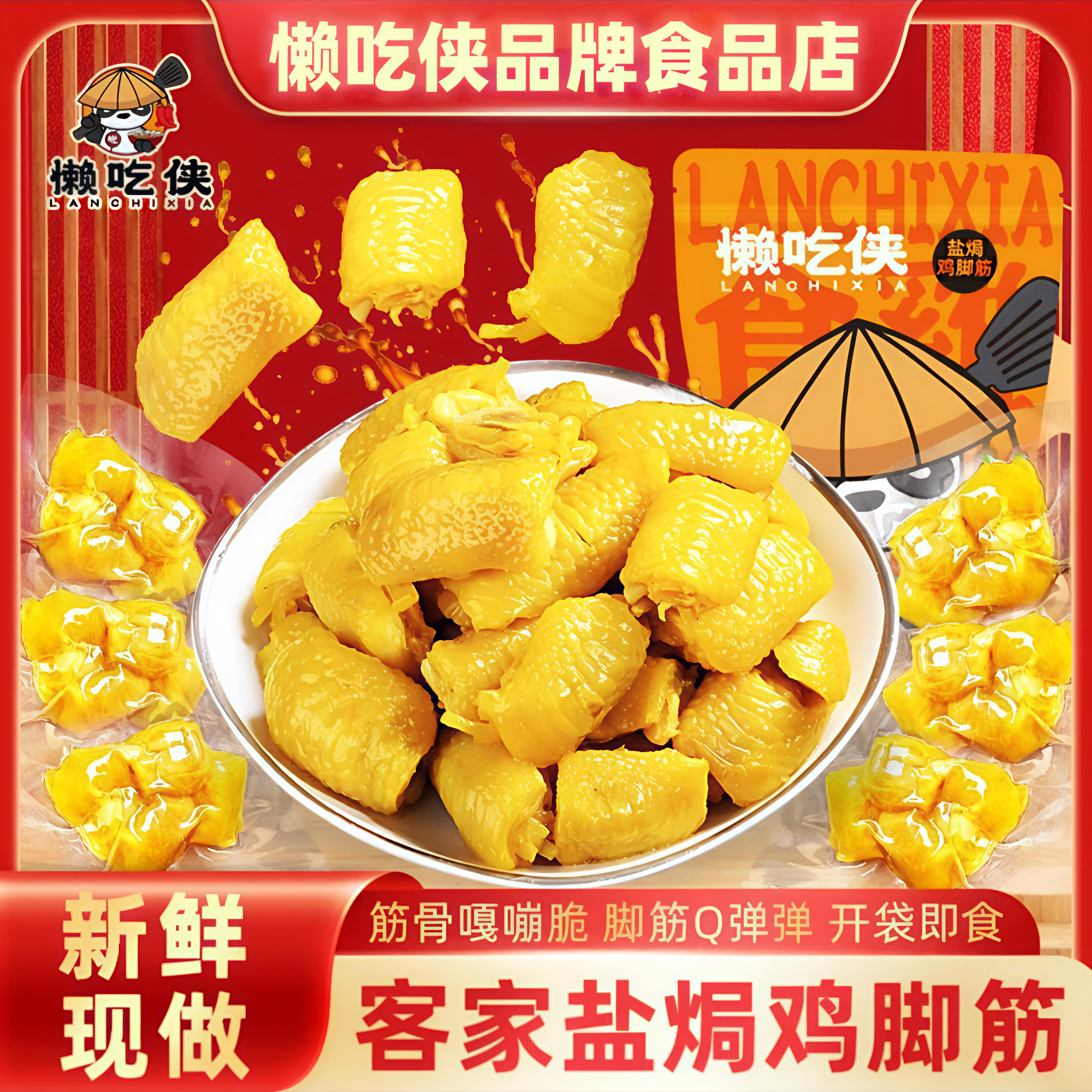 【懒吃侠】泡椒盐焗鸡脚筋香辣红油盐焗鸡爪梅州客家特产网红零食