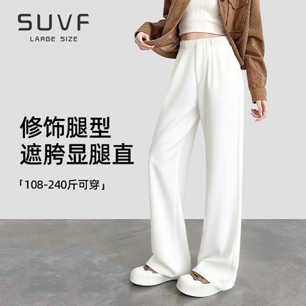 大码白色西装裤女秋冬季外穿2025新款胖mm200斤高级感垂感阔腿裤