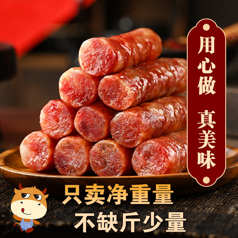 四川特产蛋黄猪肝自贡香肠腊肠长明猪肉腊肠四川广味香肠500g
