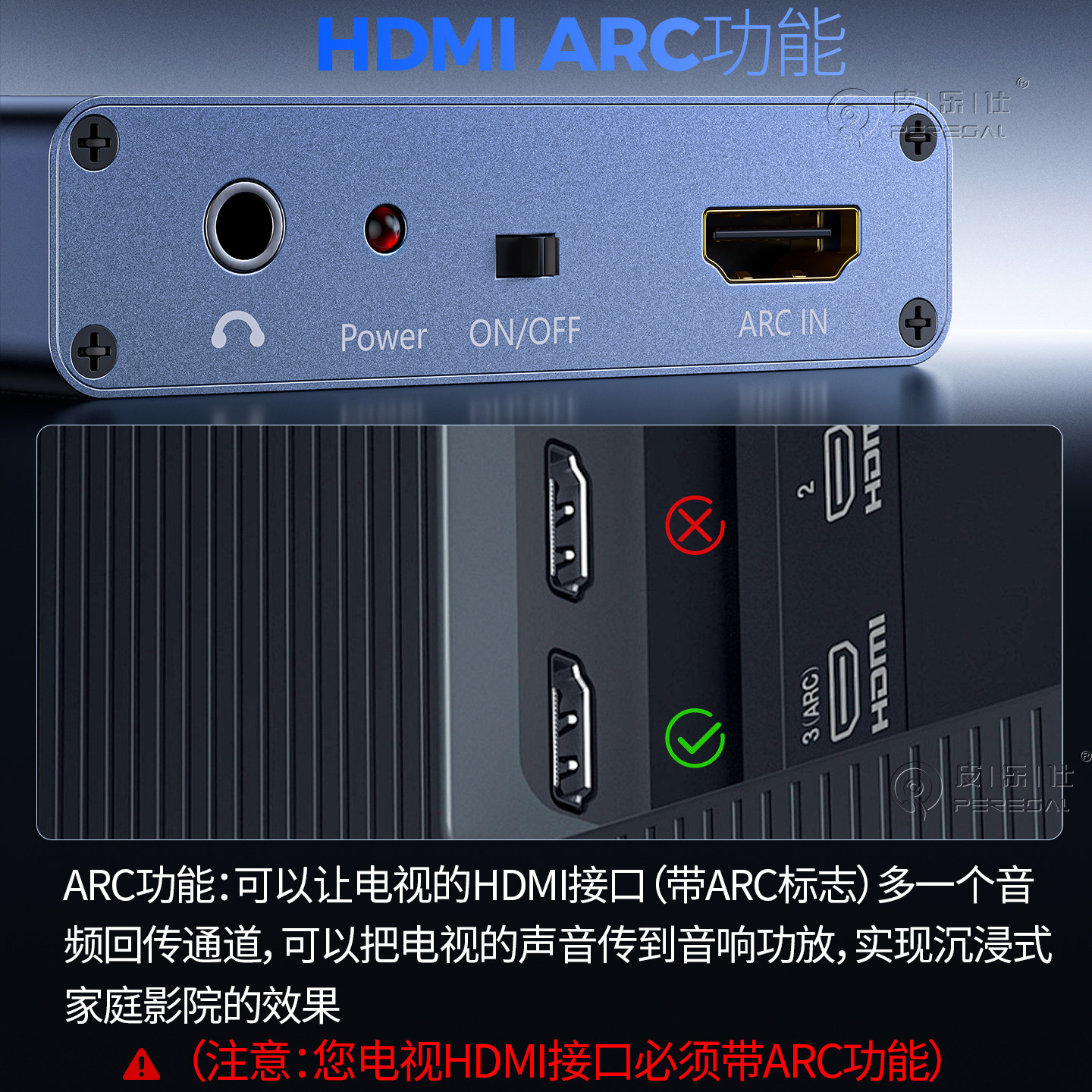 电视HDMI ARC音频回传转换器适用小米海信TCL华为智慧屏接音响功放回音壁数字spdif光纤同轴3.5耳机红白输出