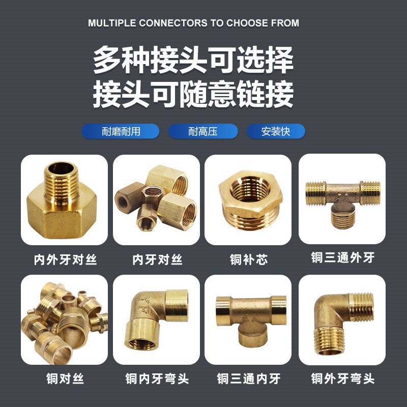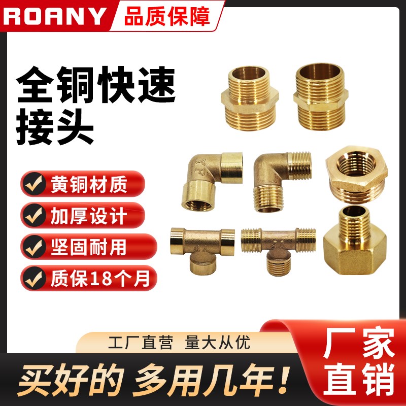 热销水管全铜4分双内外丝直接变径外牙对丝铜弯头三通补芯水暖件