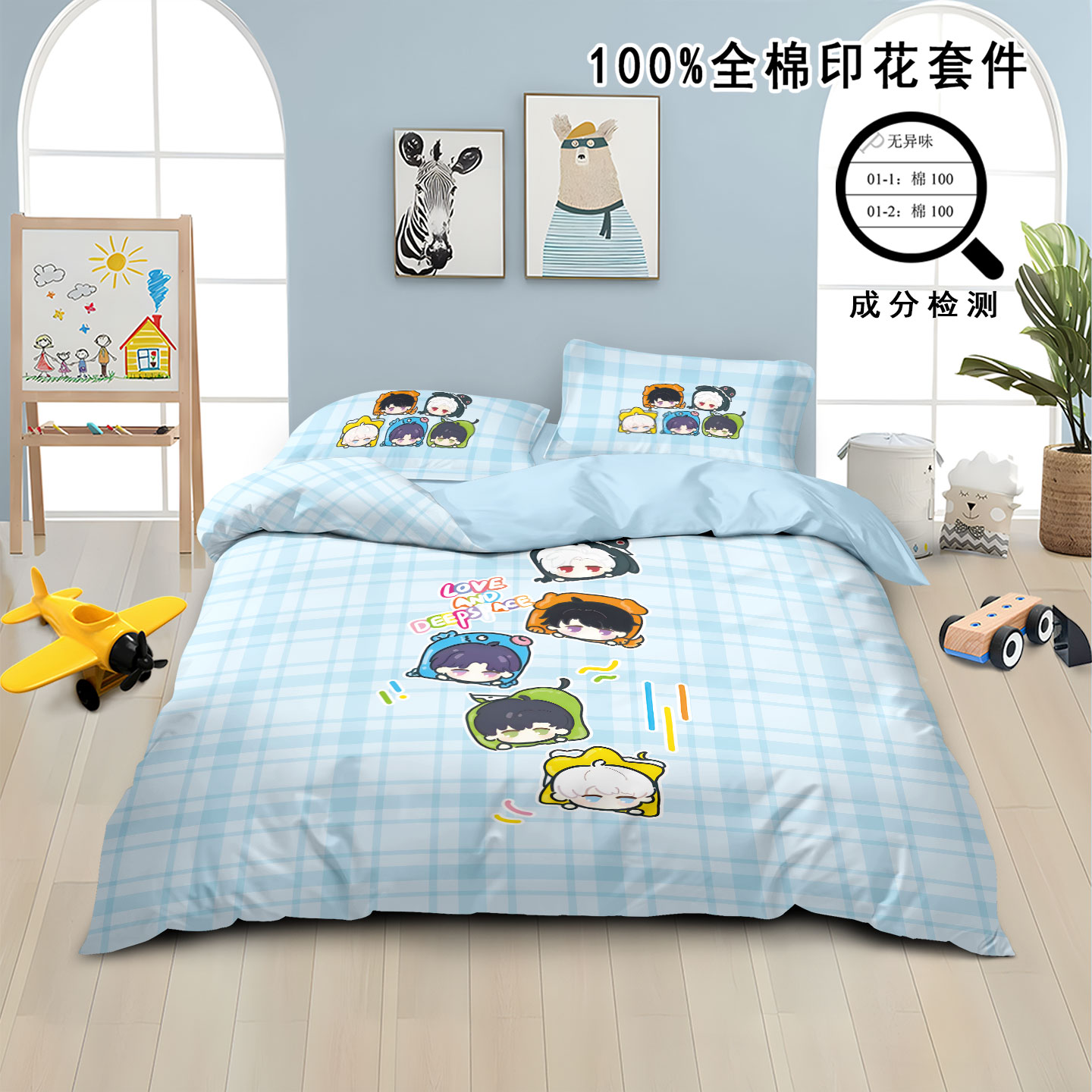 恋与深空沈星回纯棉床上四件套秦彻祁煜被套全棉儿童学生床三件套