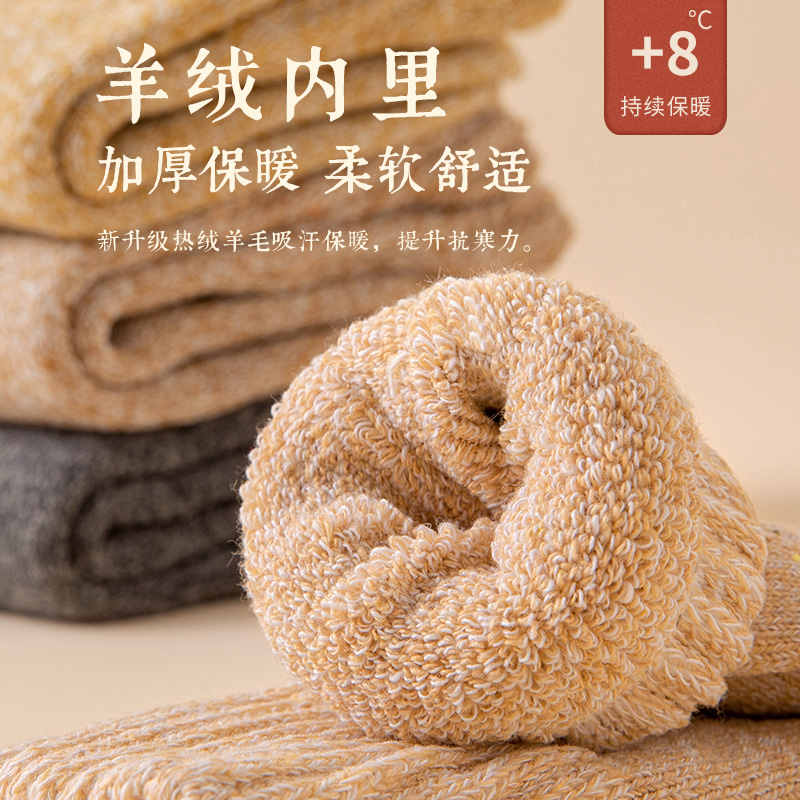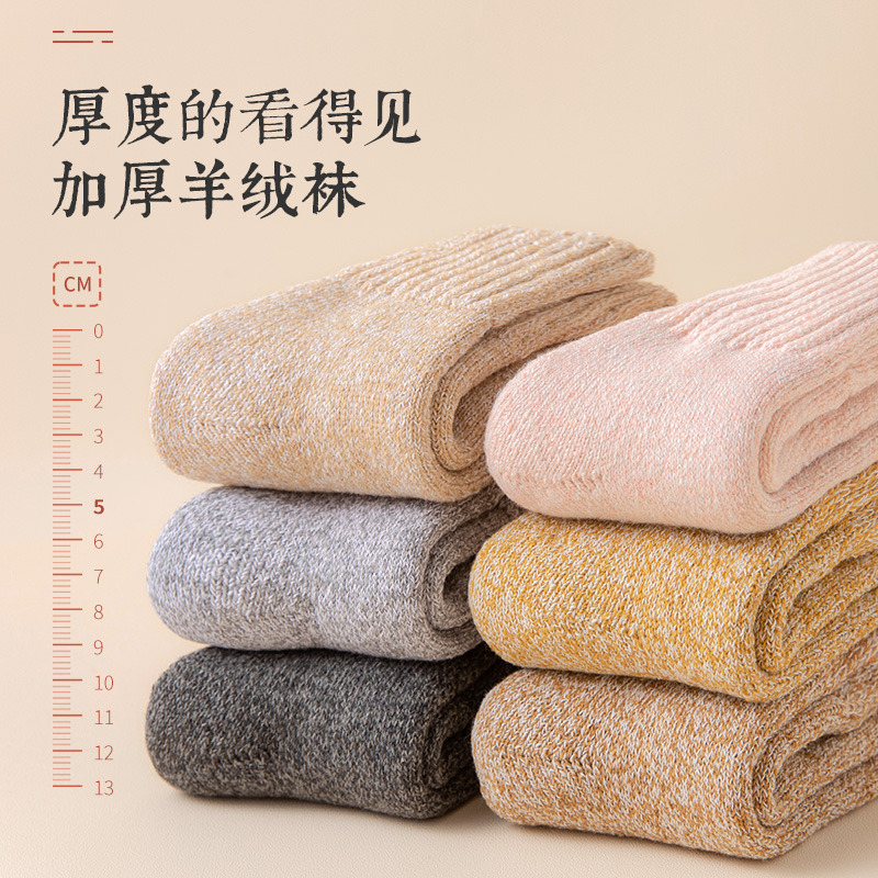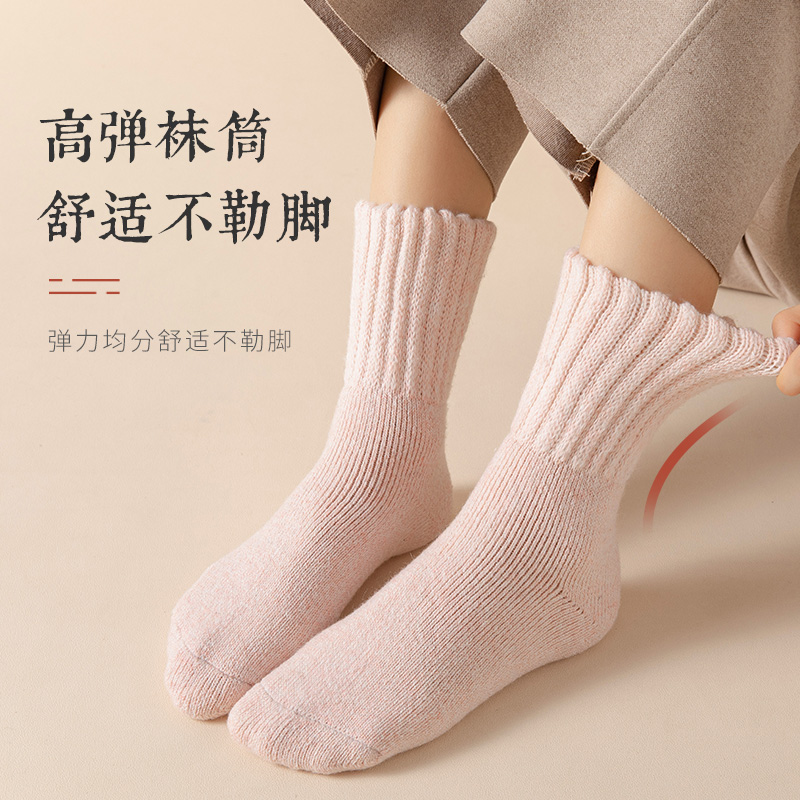 超厚羊毛袜子女秋冬款保暖中筒袜冬天棉袜加厚加绒羊绒睡眠月子袜