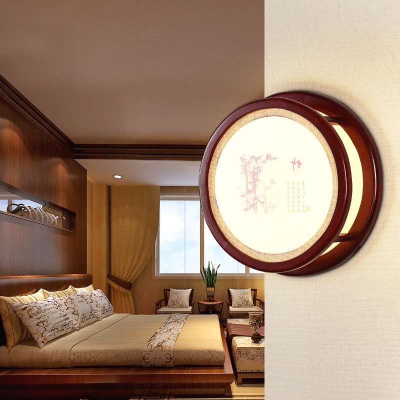 现代中式壁灯实木吸顶led圆形书房床头走廊过道楼梯阳台灯中国风