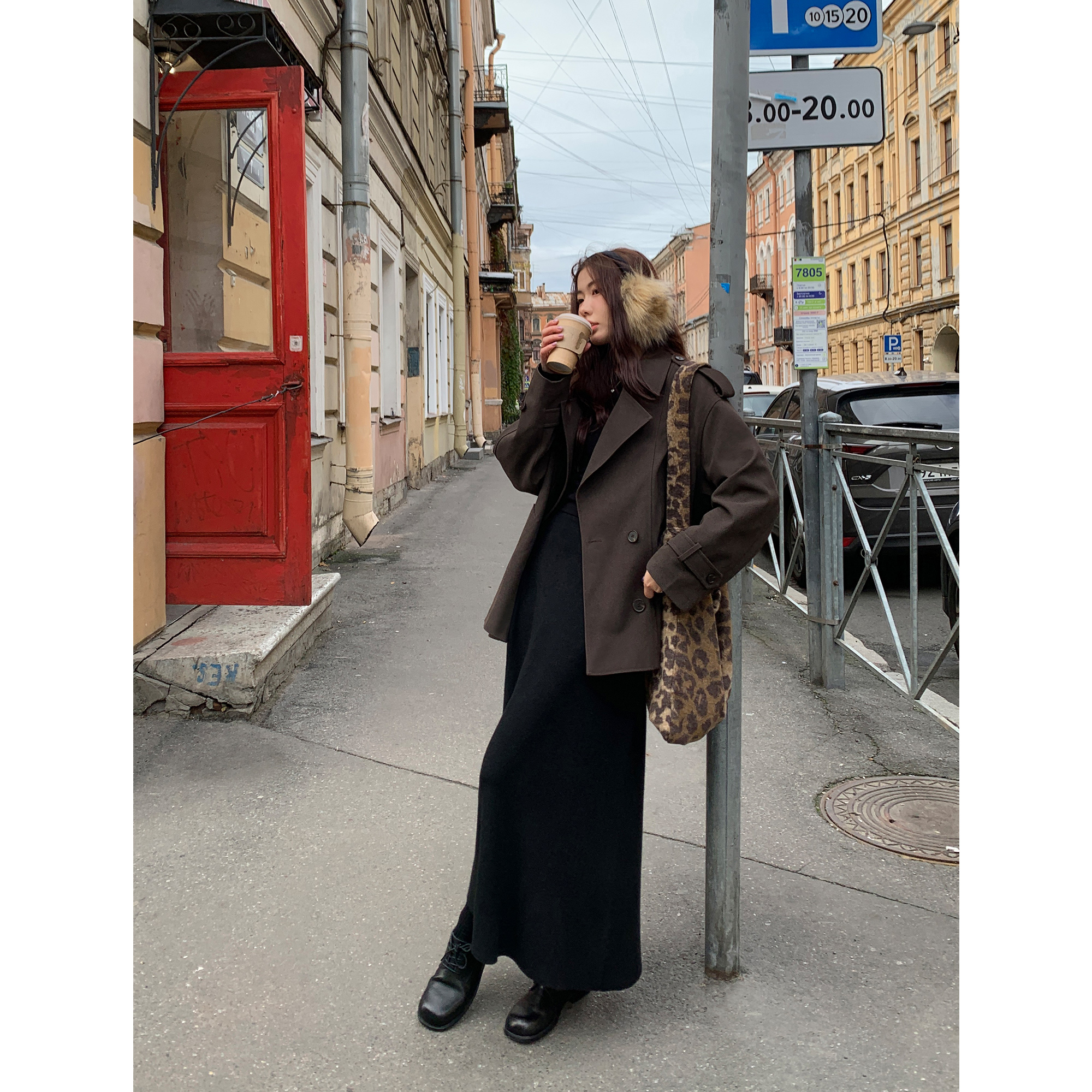 pusumede麂皮短款风衣外套女秋冬新款设计感气质小个子夹棉上衣