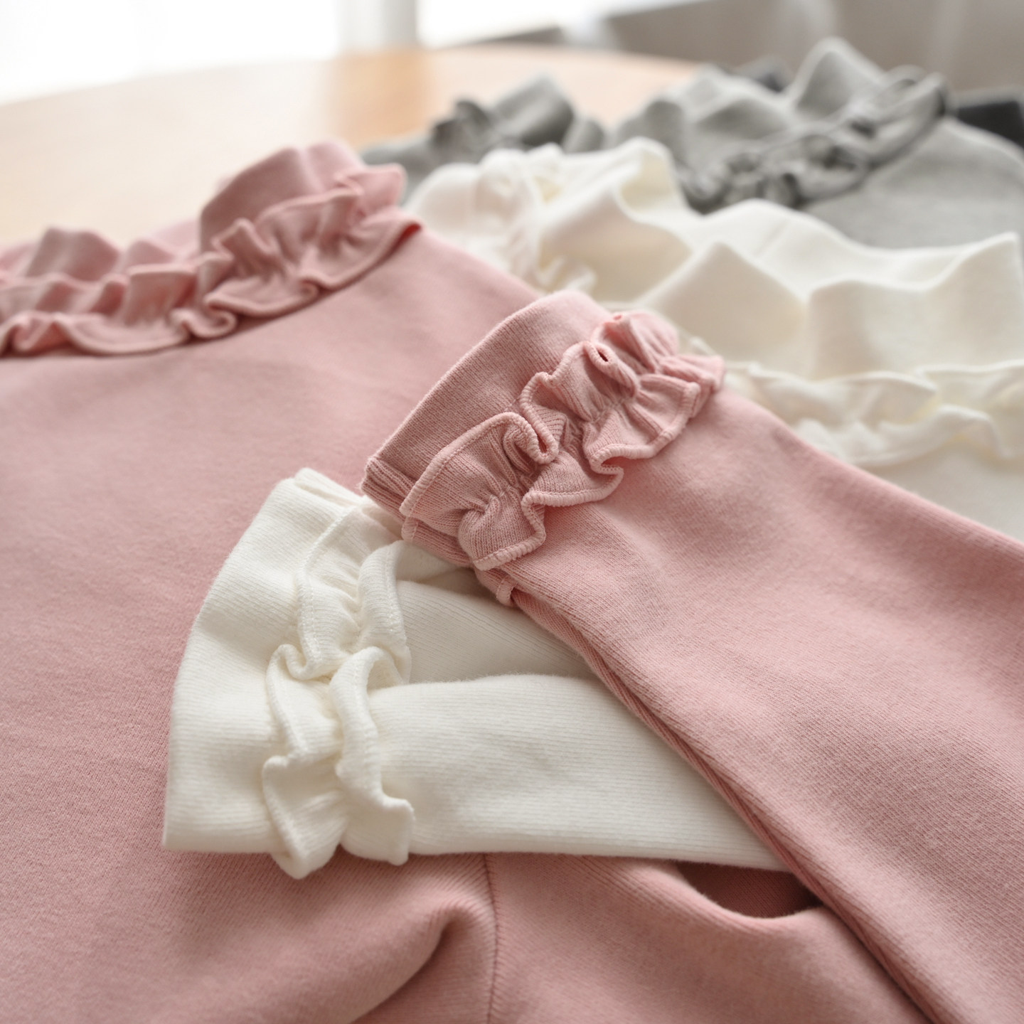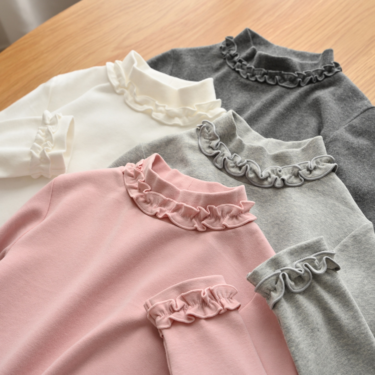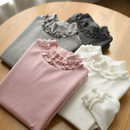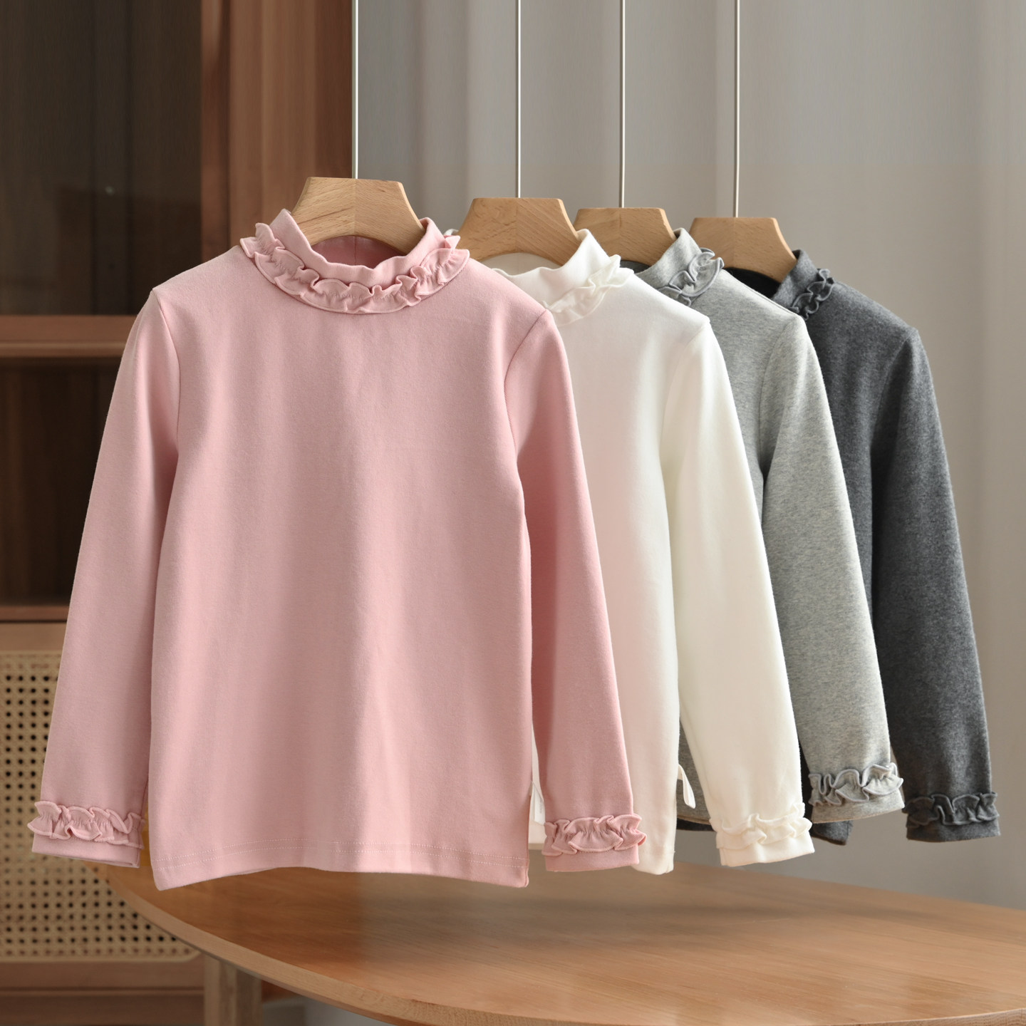 棉 儿童半高领木耳边长袖精梳棉T恤女童保暖内衣打底衫上秋冬款