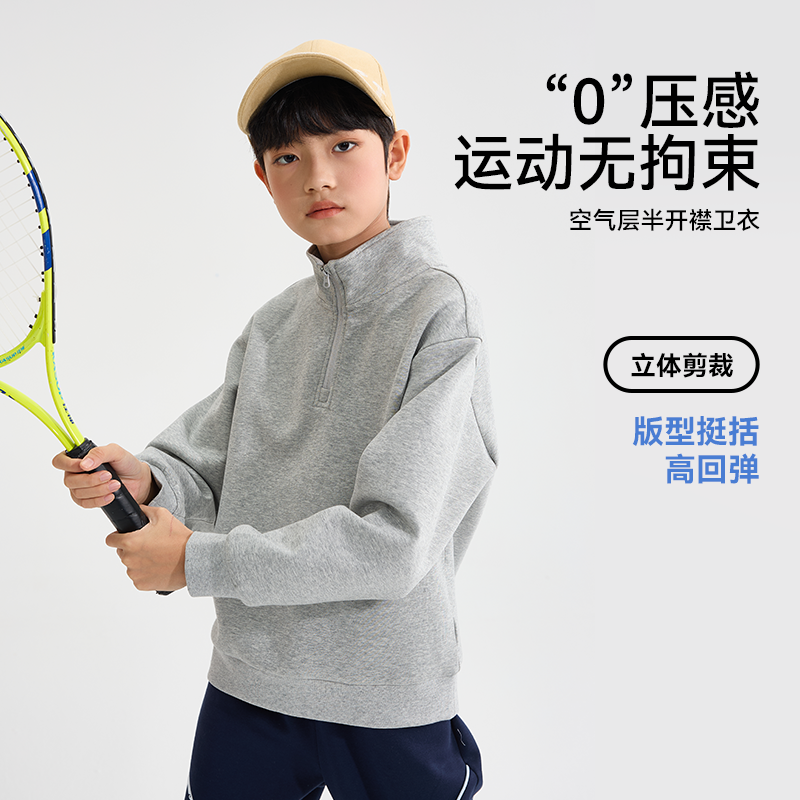 真维斯童装男童卫衣加绒儿童春秋款半高领打底衫大童秋季国潮衣服