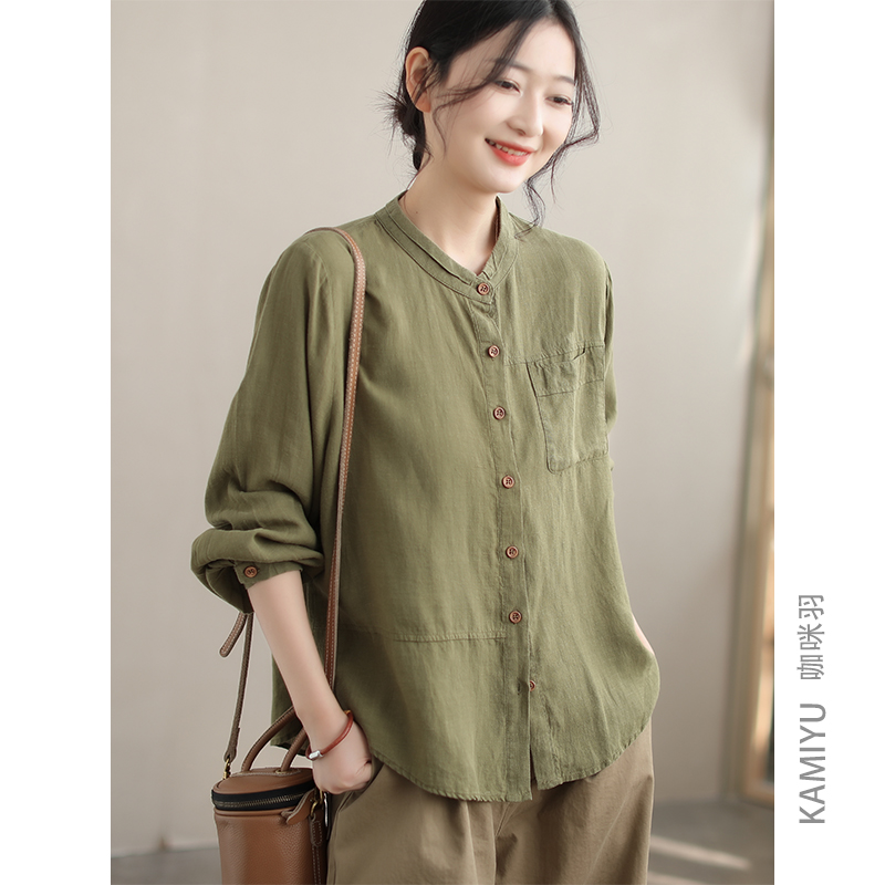 咖咪羽衬衫女春装文艺长袖亚麻休闲纯色原创宽松百搭复古女款开衫