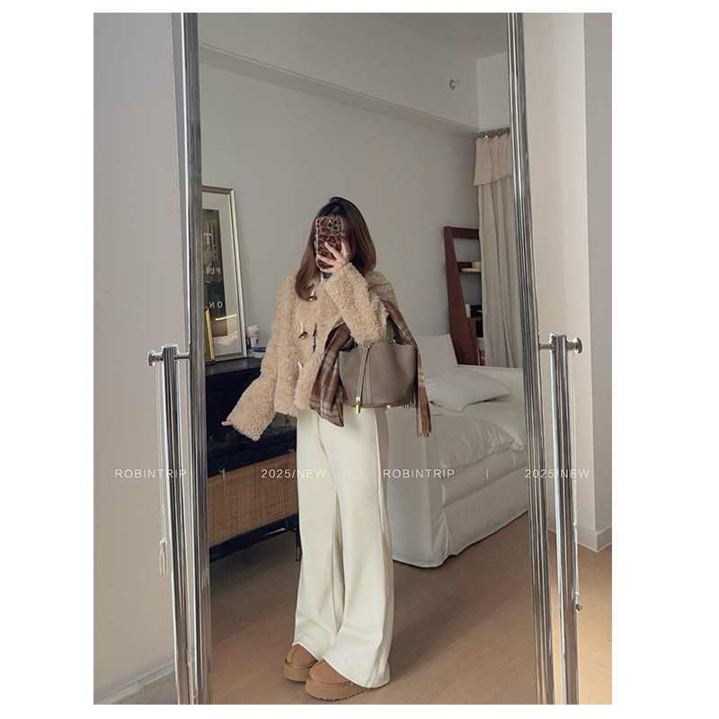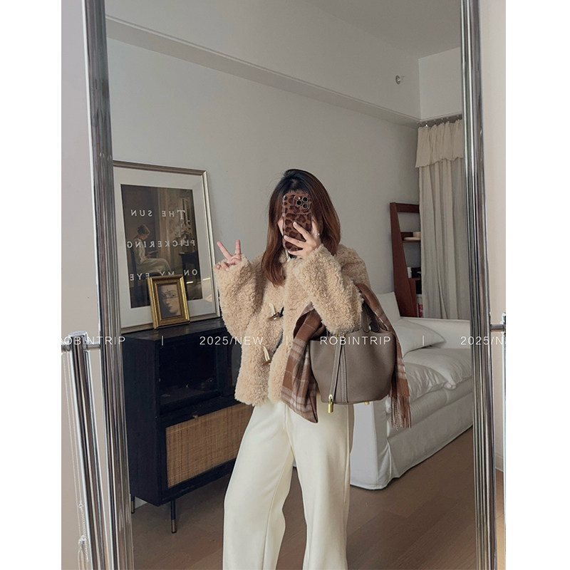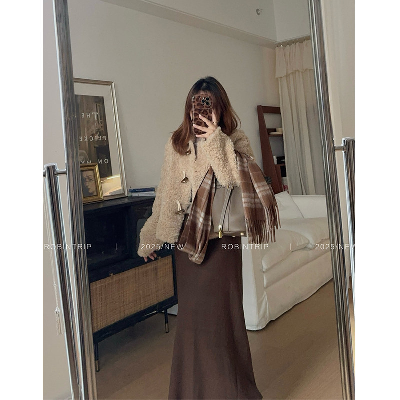 知更鸟昂酱小个子小香风羊羔毛100羊毛短款皮草外套女