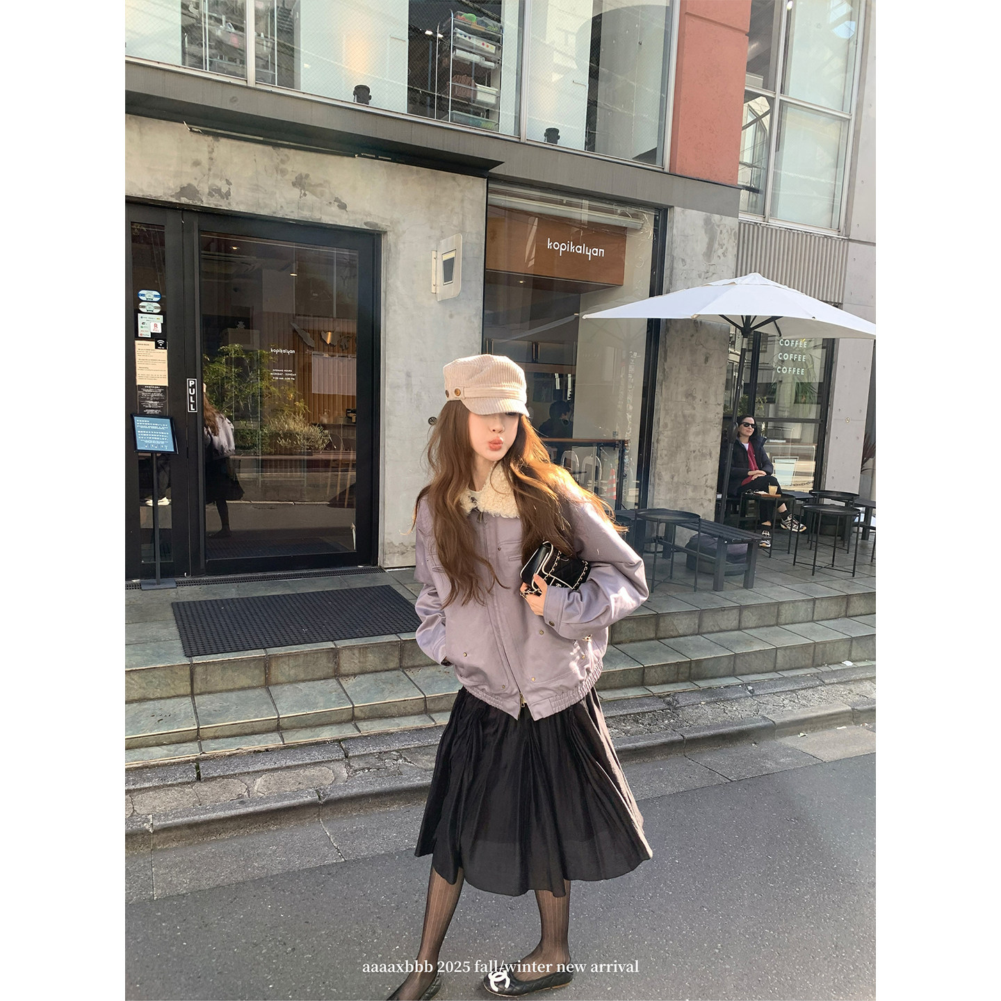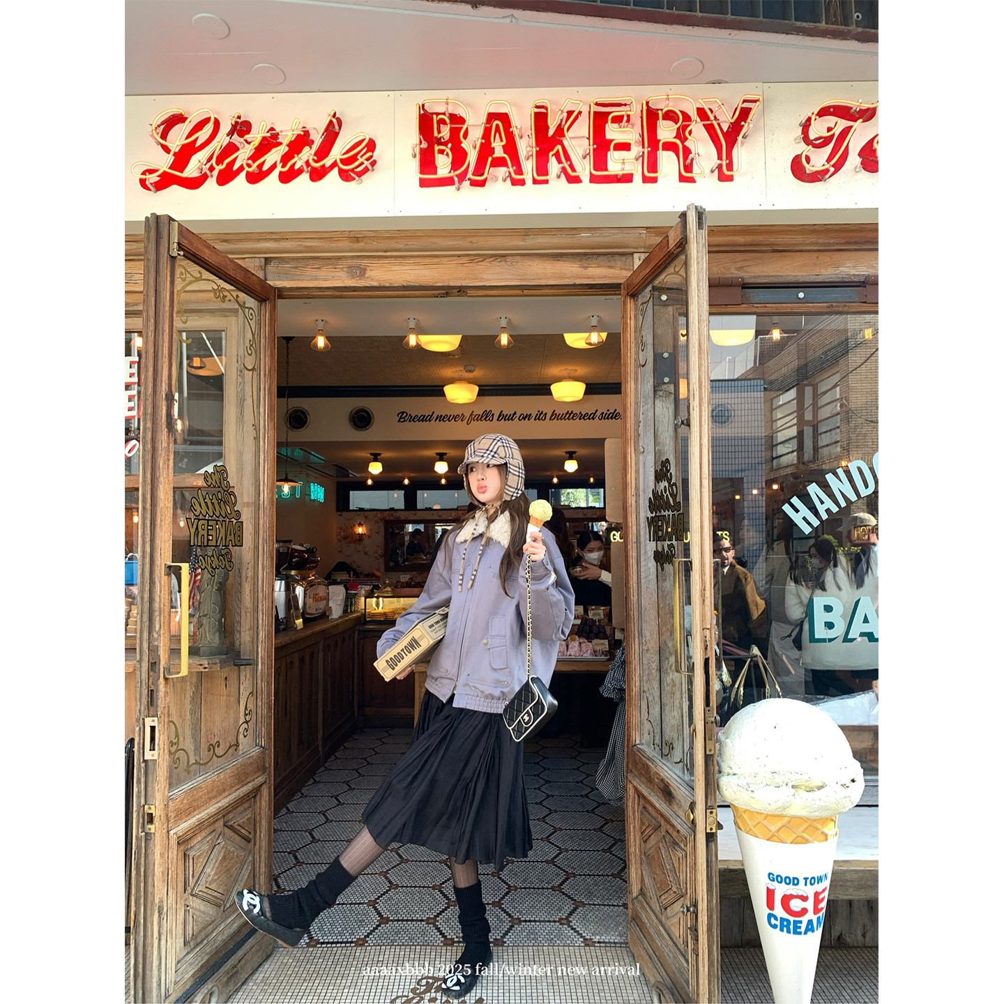 aaaaxbbb 橡子街 巴恩风拼接毛领棉服两色天丝棉宽松工装外套秋冬