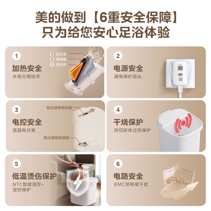 美的泡脚桶加热恒温杀菌高深桶全自动按摩足浴器洗脚盆节日礼物