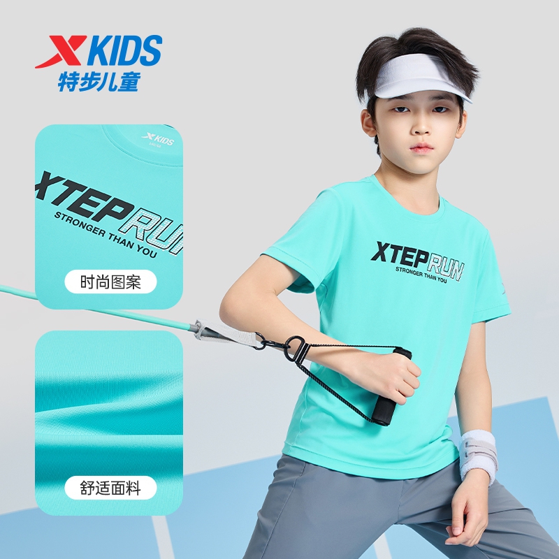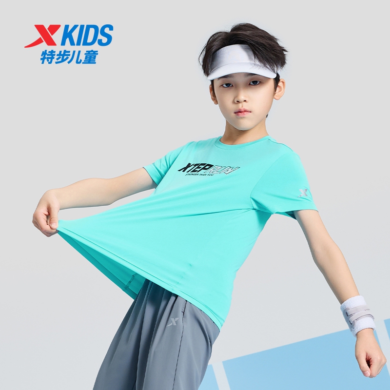 特步儿童新款速干短袖t恤男夏装