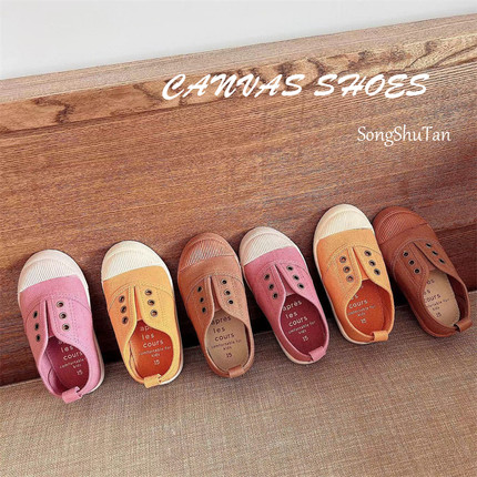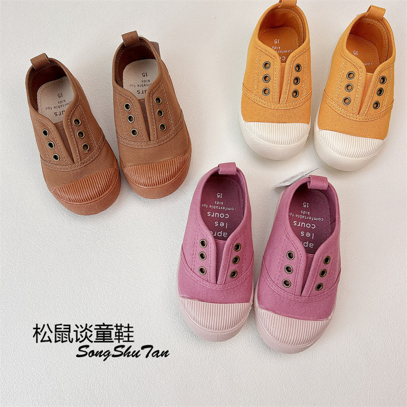 复古儿童帆布鞋男童女童幼儿园鞋森系休闲鞋一脚蹬室内鞋防滑软底