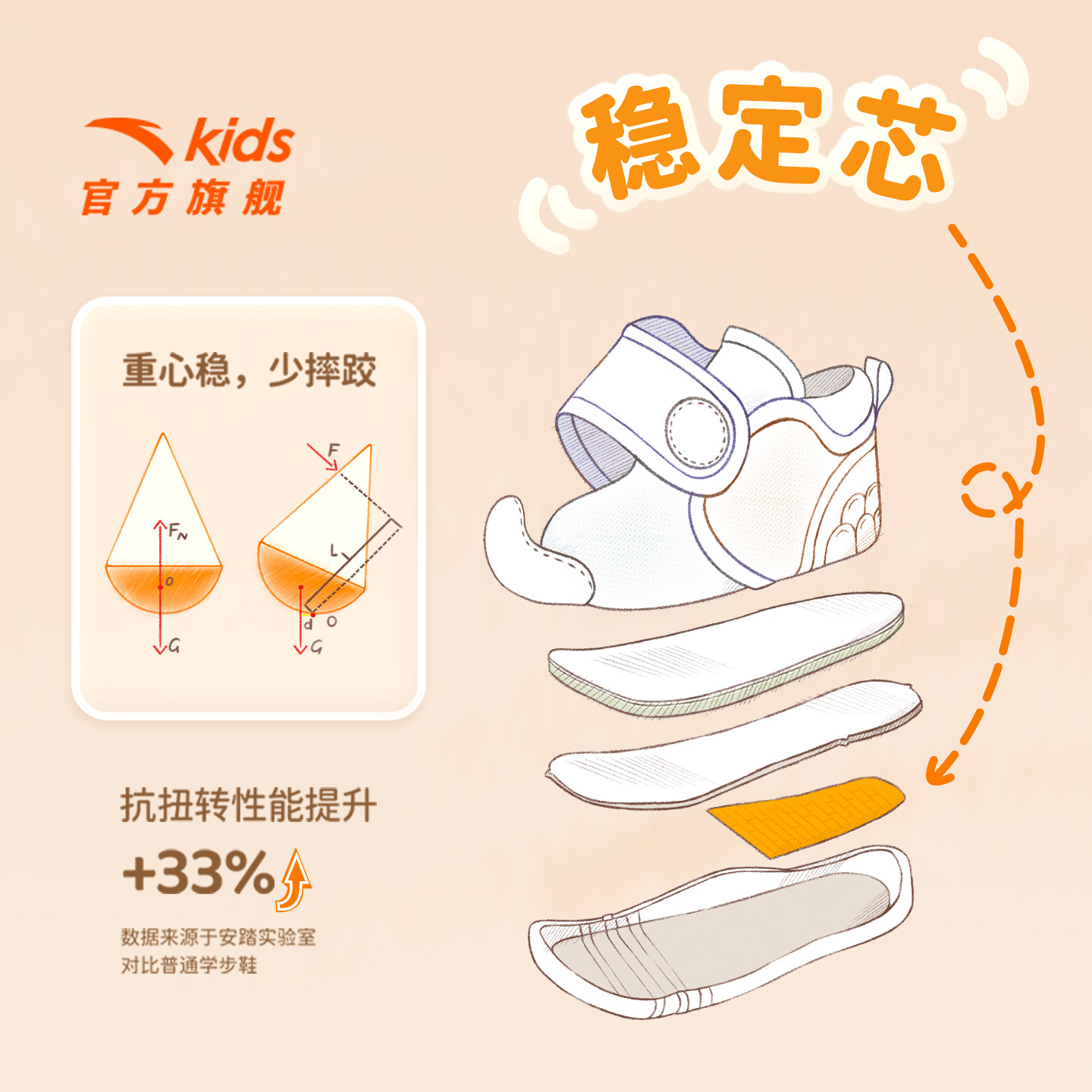稳稳不倒翁安踏儿童鞋学步鞋二阶段秋冬新款男女宝宝幼儿园运动鞋