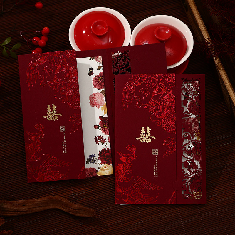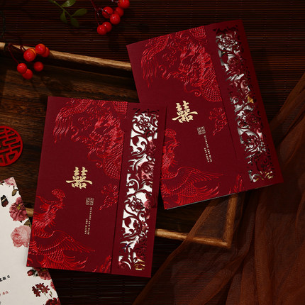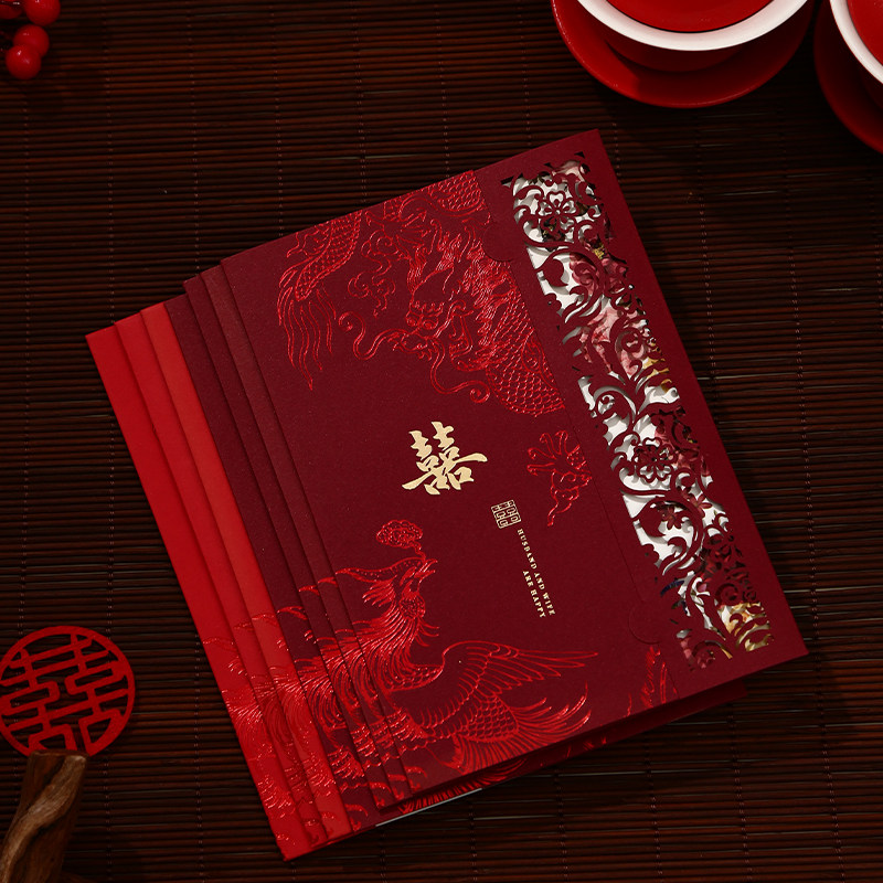 结婚请帖婚礼邀请函中国风酒红请柬2026年新款婚宴高级感喜帖定制