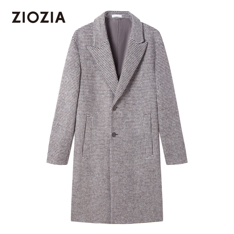 ZIOZIA秋冬毛呢大衣千鸟格花纹经典呢子保暖风衣男ZCG24901T
