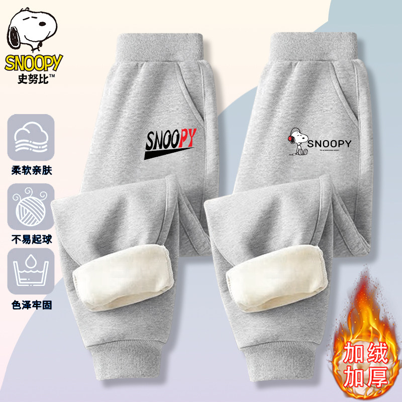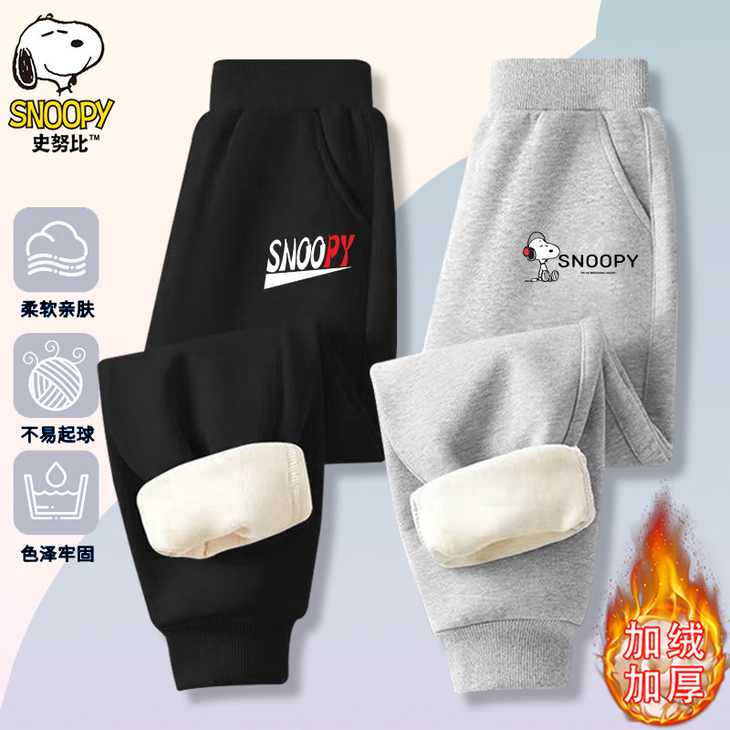 史努比男童秋冬裤子加绒加厚休闲卫裤2025儿童亲肤保暖运动裤百搭