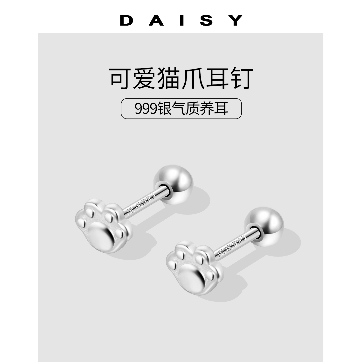 999纯银猫爪耳钉女气质可爱