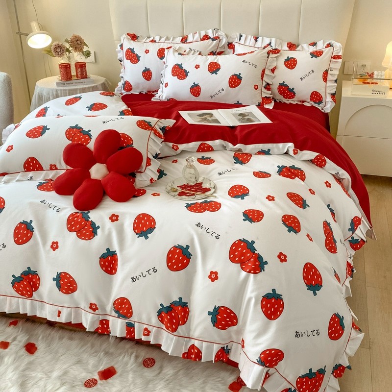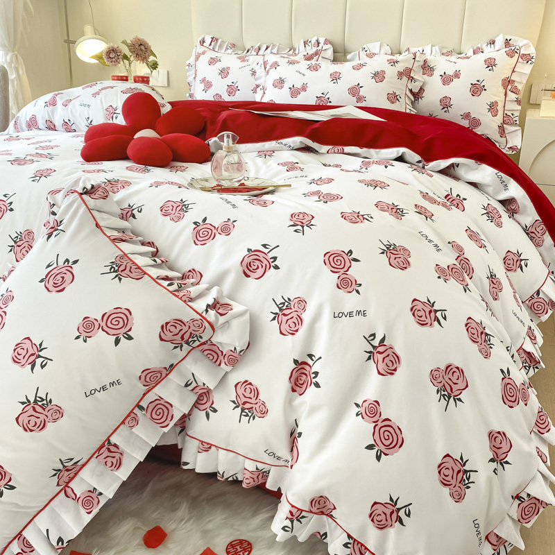 简约婚庆四件套红色结婚被套床单全棉新婚房床上用品陪嫁喜被