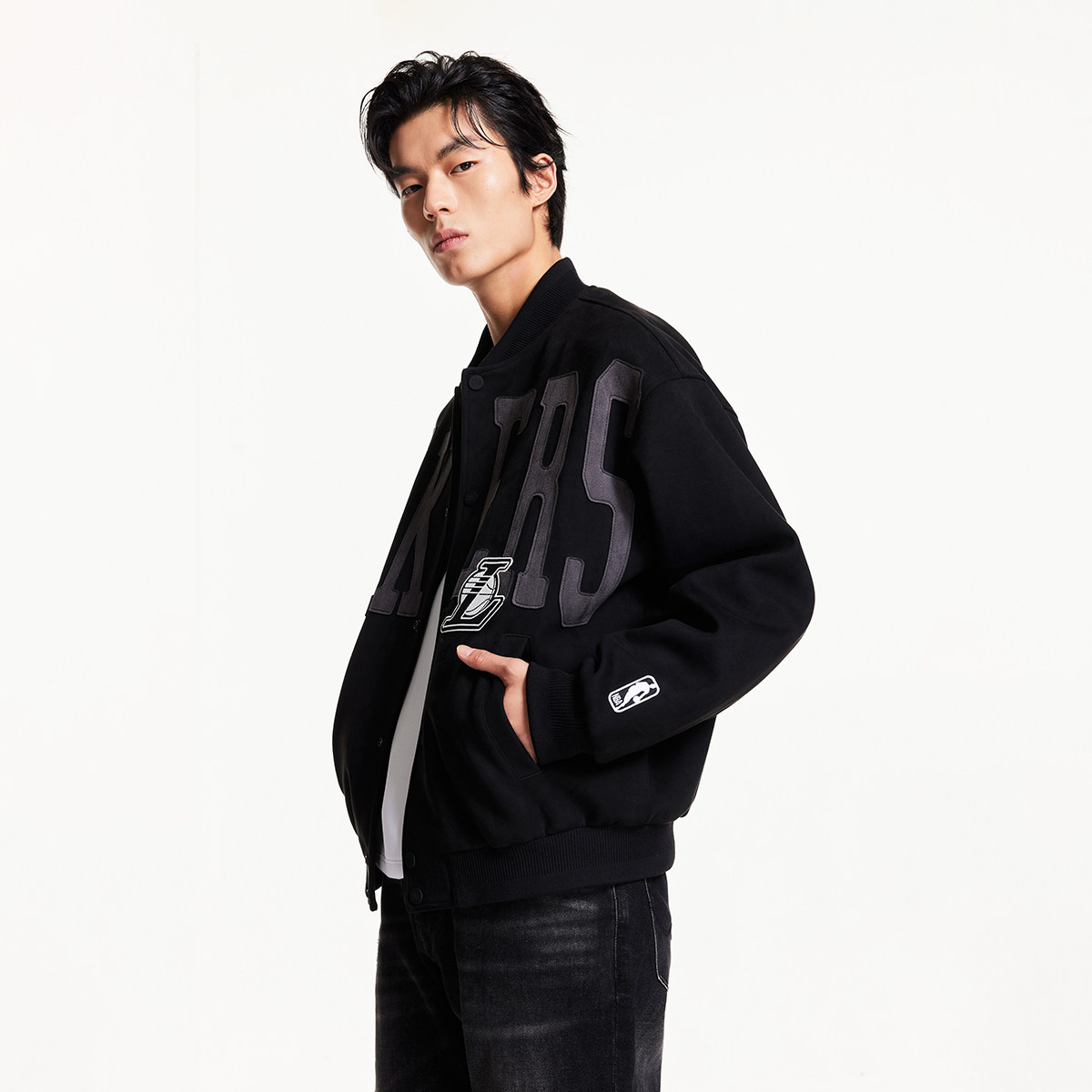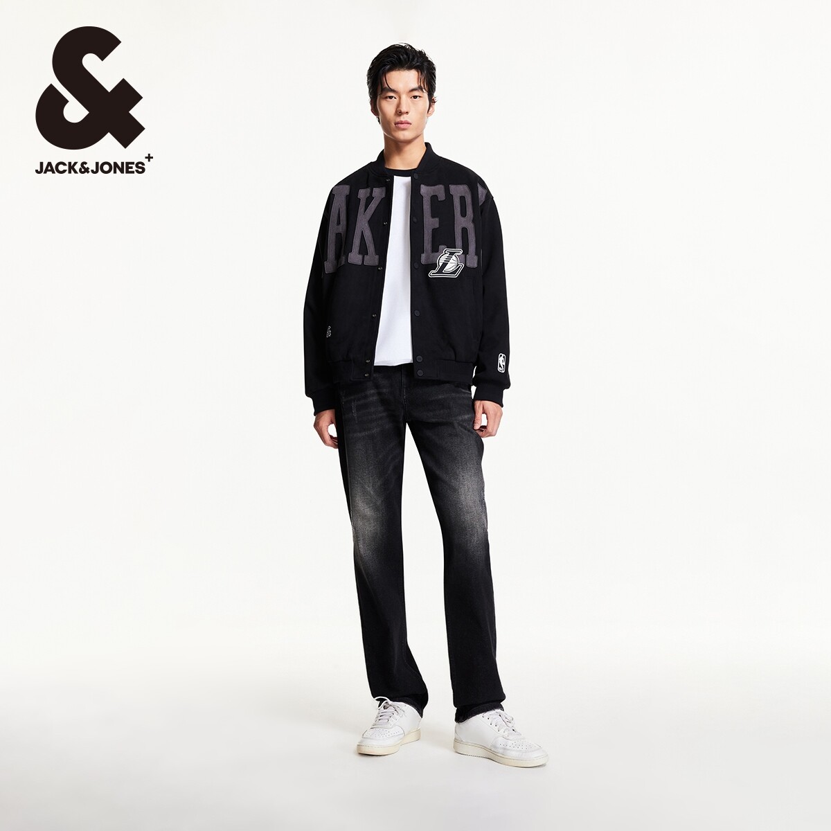 杰克琼斯男装夹克 外套春季NBA联名湖人队男士棒球领刺绣运动款