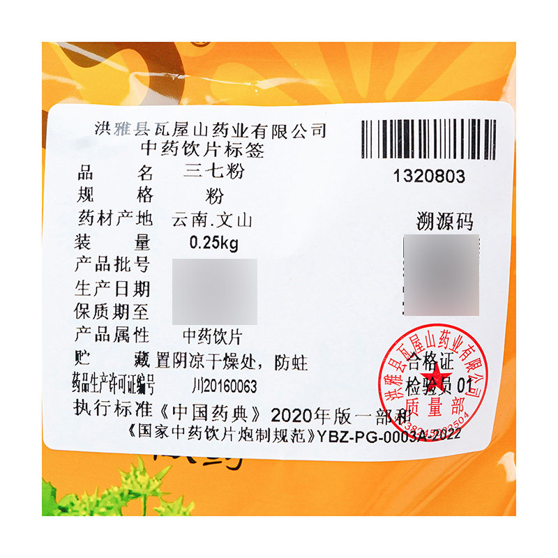 瓦屋山药业中药饮片 三七粉 粉 中药材抓配 中药材店铺大全