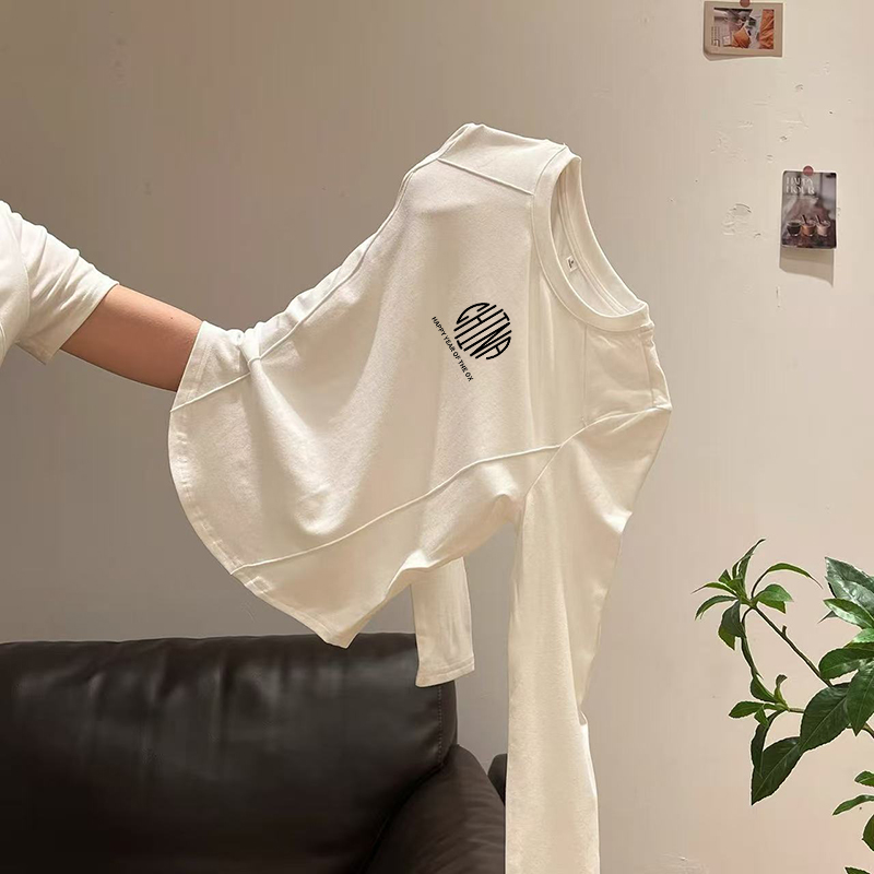 欧货白色长袖t恤女春秋冬内搭2025新款修身短款上衣大码打底衫ins