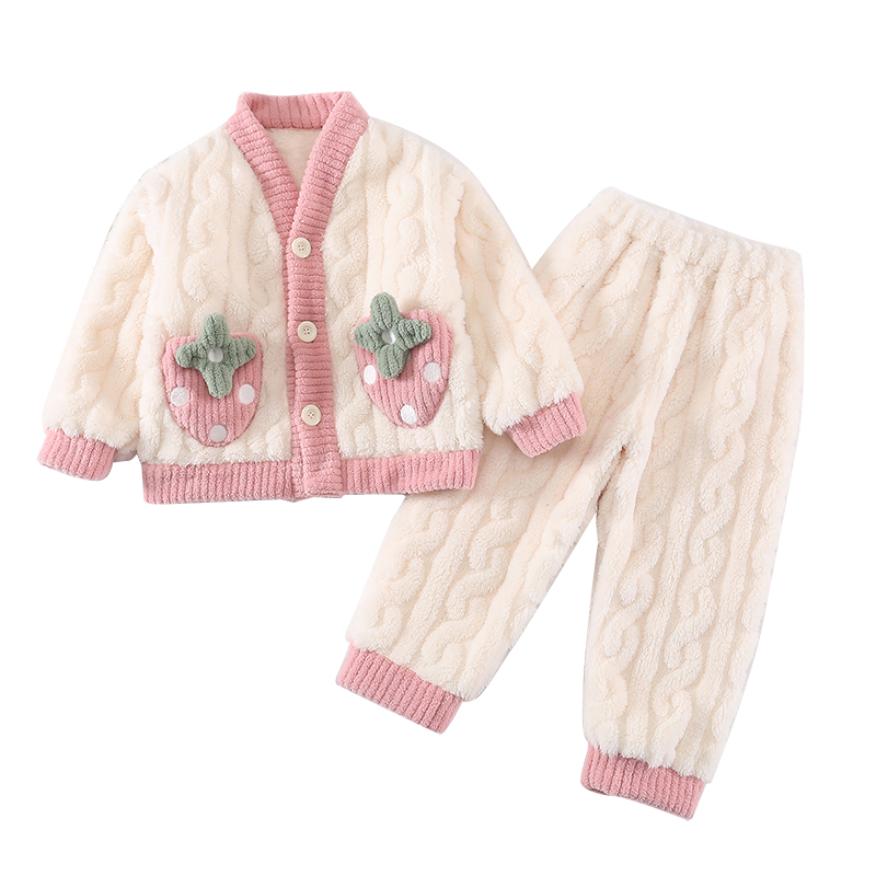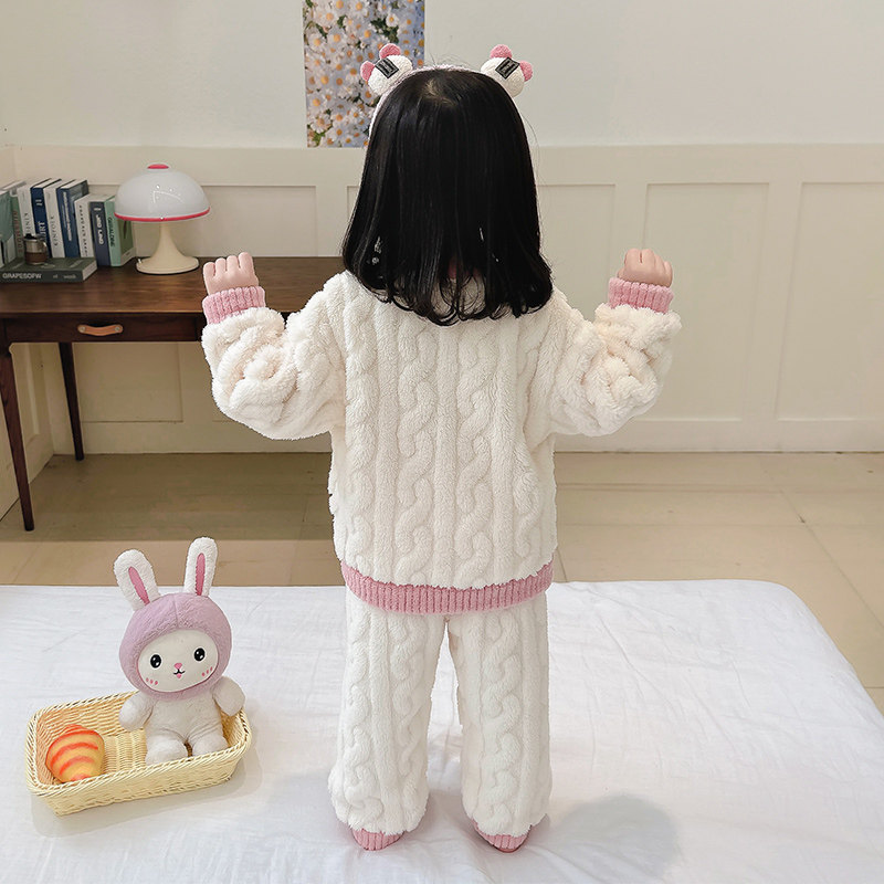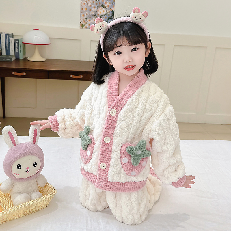 女童珊瑚绒睡衣秋冬保暖加厚女孩女宝宝冬款开衫儿童法兰绒家居服