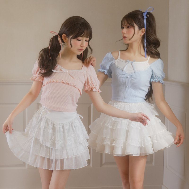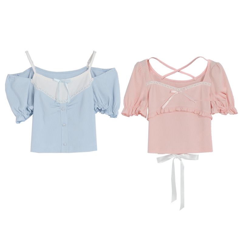 森女部落指尖芭蕾泡泡袖短袖T恤2025新款芭蕾风花边短袖上衣女夏