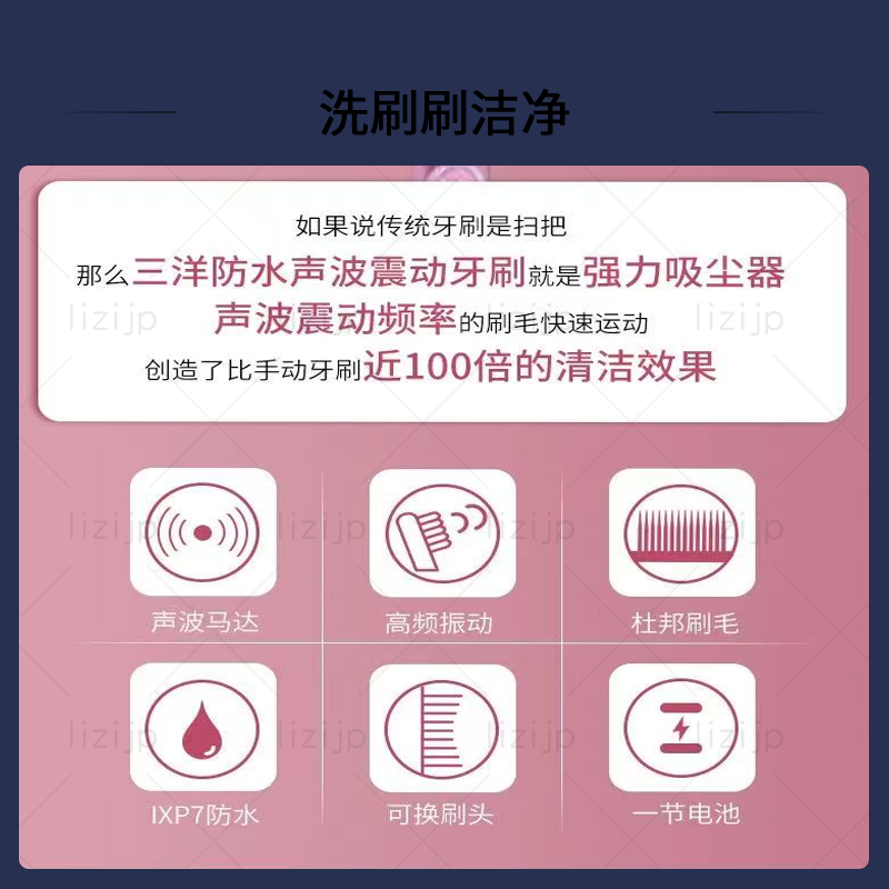 日本三洋电动牙刷超声波震动防水极细毛软毛送替换头套装男女学生