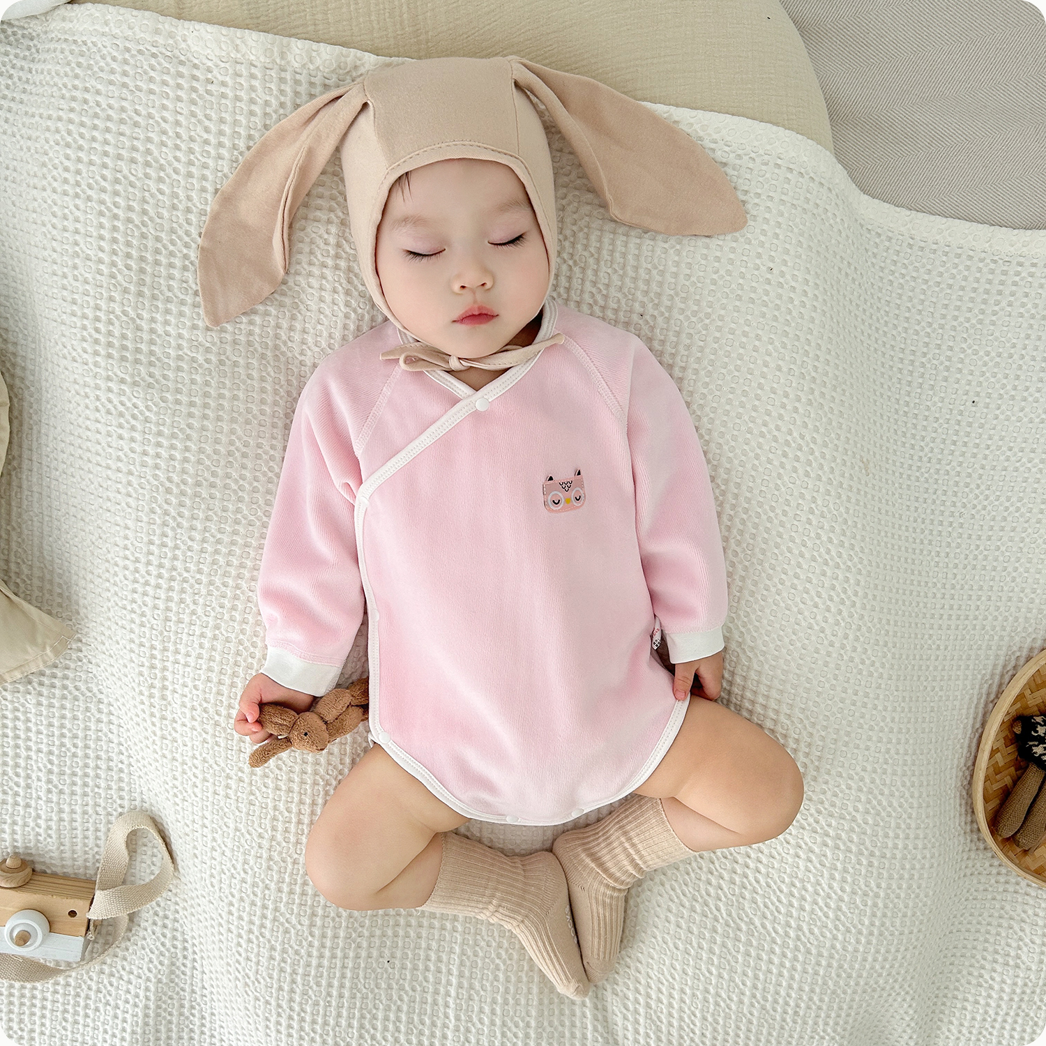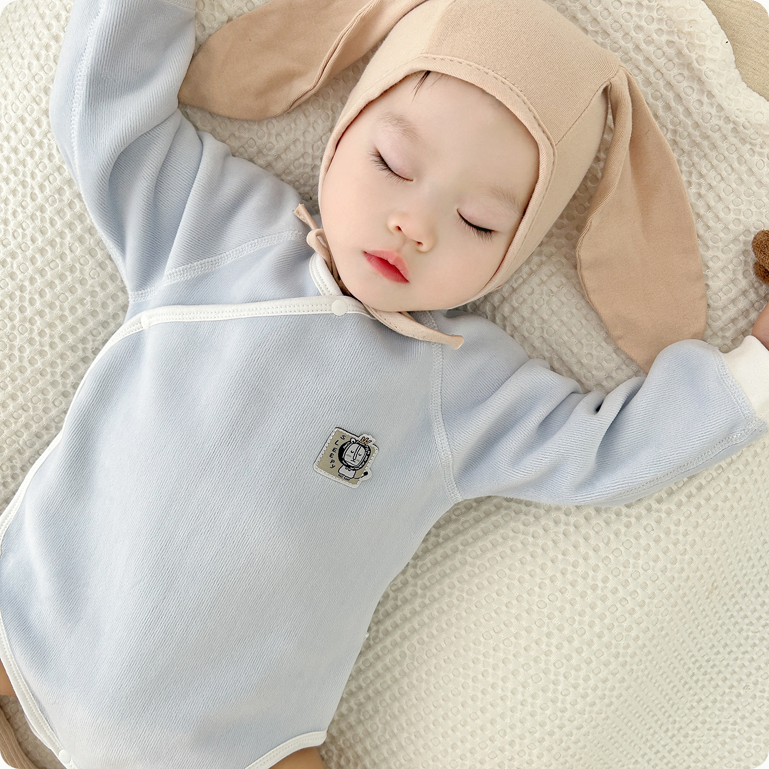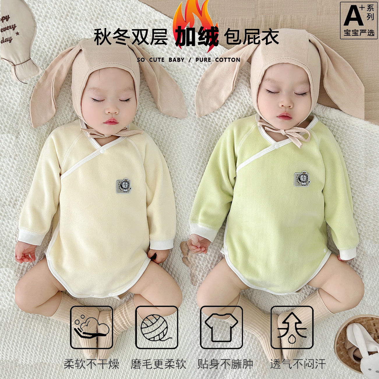 新生婴儿加绒包屁衣春秋冬三角哈衣爬服加厚初生宝宝连体护肚睡衣