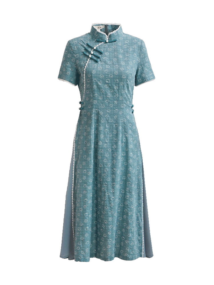 筠雅连衣裙女夏季2025年短袖薄款收腰显瘦时尚复古印花中国风女装