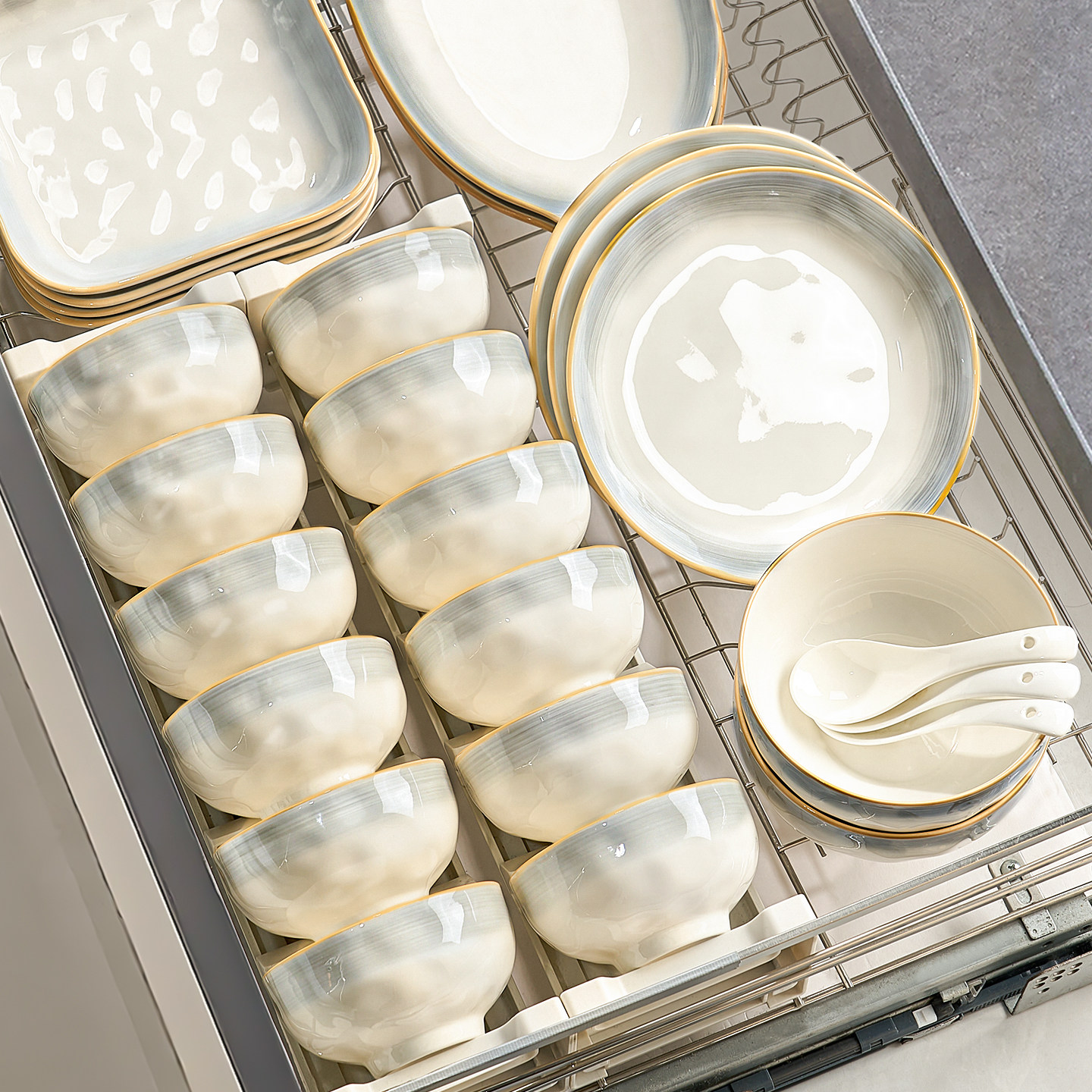 釉下彩碗碟餐具套装家用2025新款高颜值碗盘筷简约高级感乔迁碗具