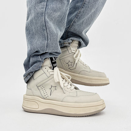 SUPMLA新款高帮板鞋情侣鞋休闲高街联名加绒小白鞋男女真皮马丁靴
