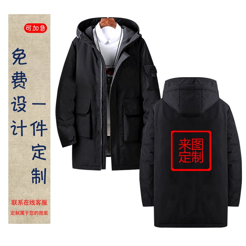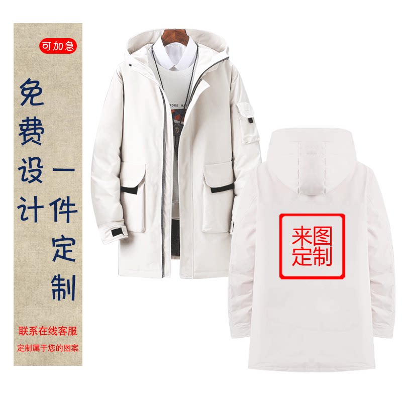 一件定制LOGO冬季防寒可定制工装风中长款保暖羽绒服保暖加厚外套