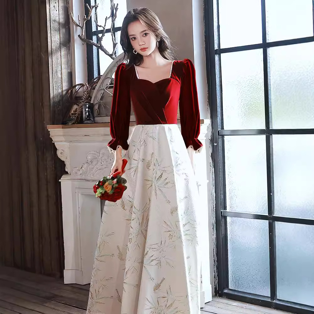 敬酒服新娘2025新款红色秋季结婚高级感订婚轻奢法式晚礼服裙