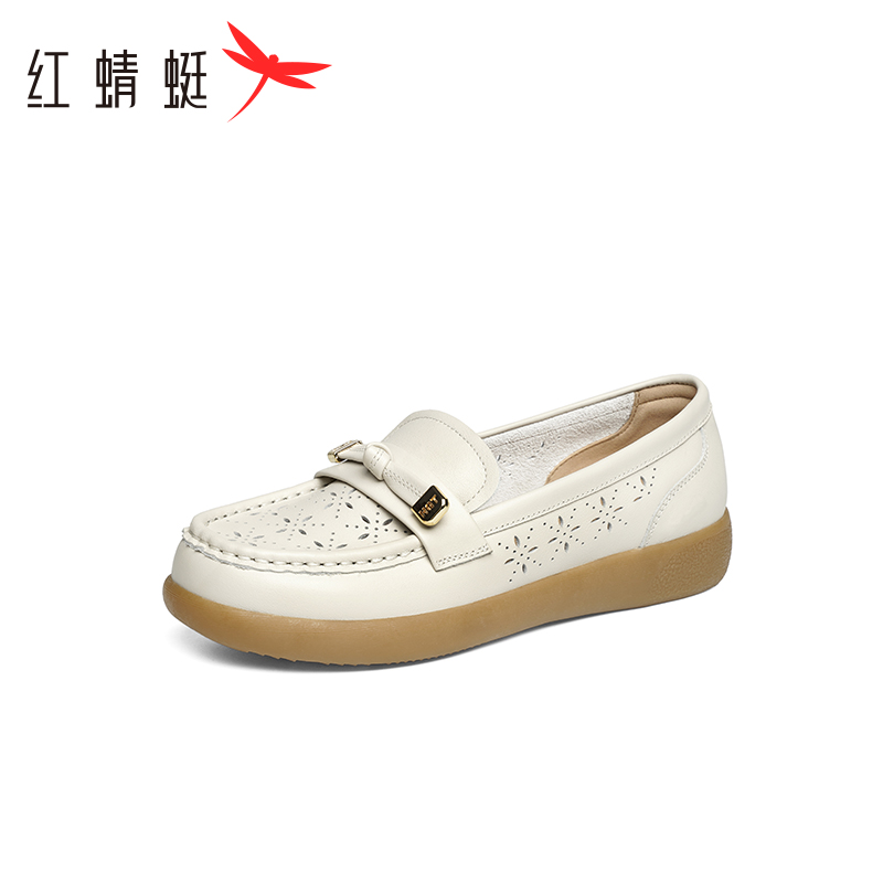 红蜻蜓妈妈单鞋真皮休闲镂空皮鞋