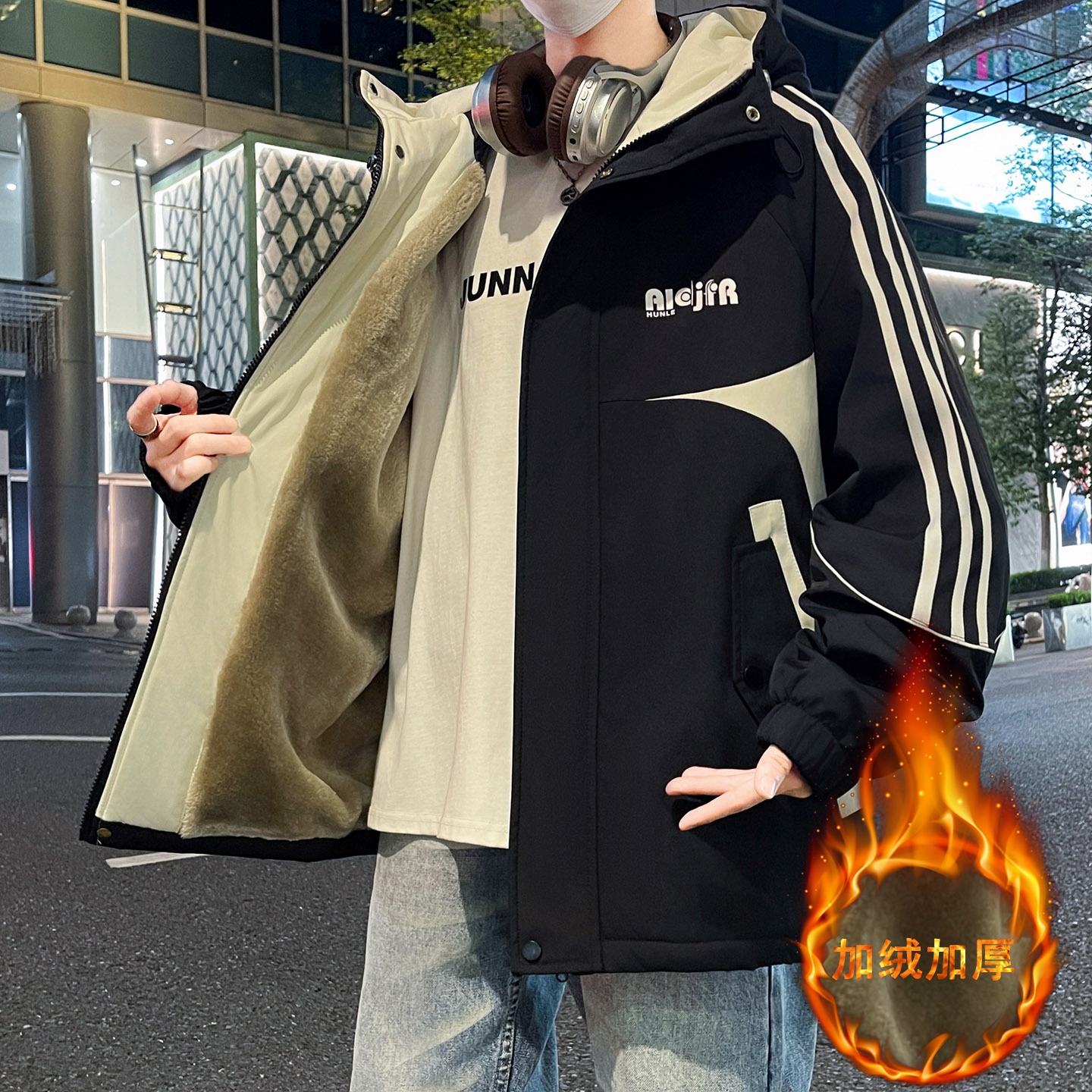 以纯加绒冲锋衣夹克棉服棉衣男款