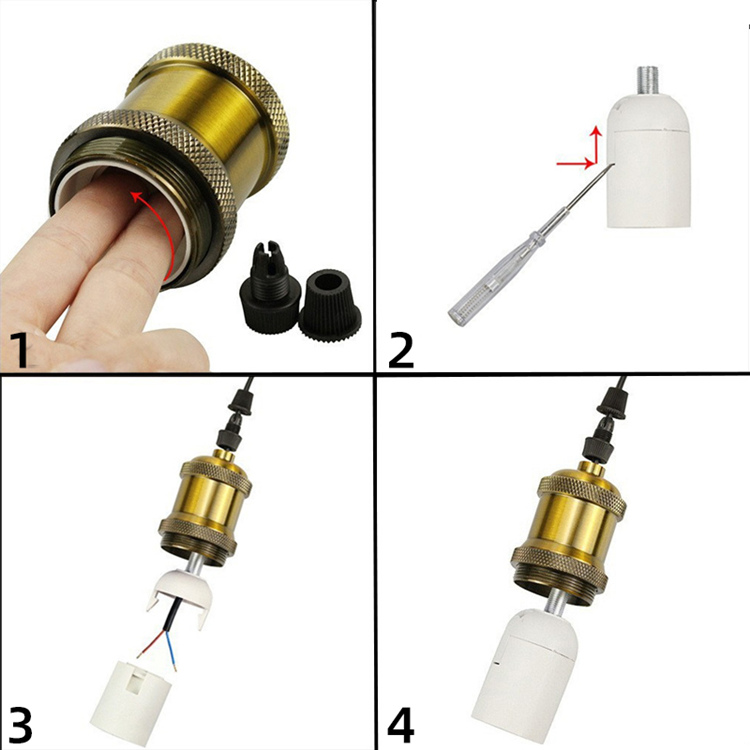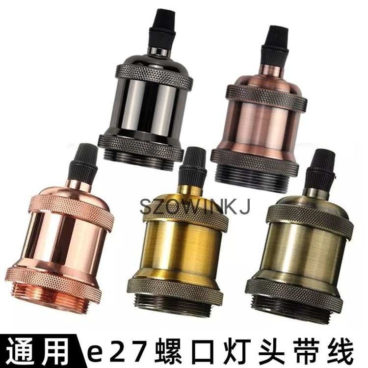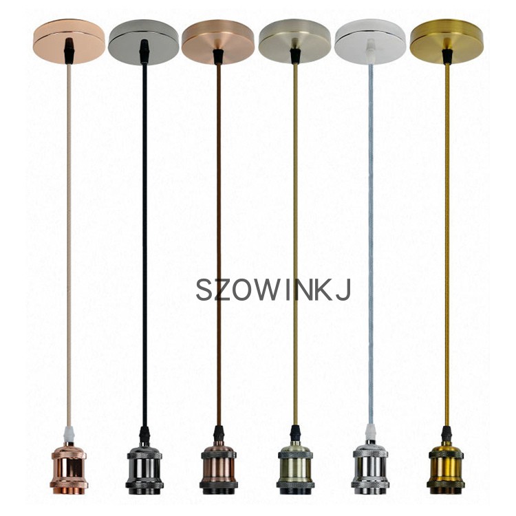 复古黑色吊灯头吊线悬挂式铝合灯头E27大螺口带线仿古灯座编织线