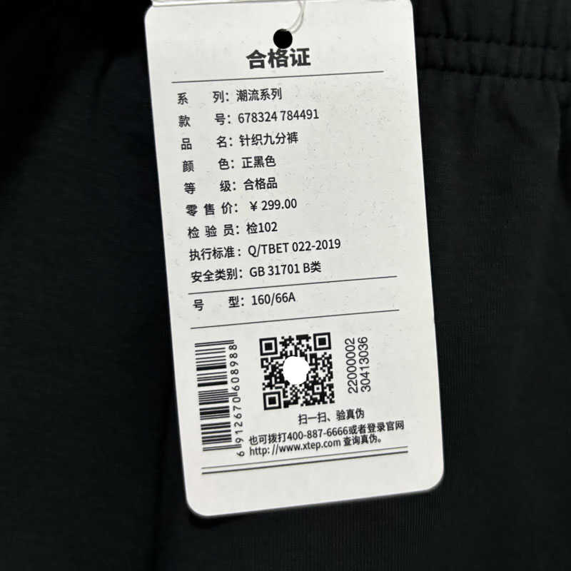 特步儿童正品春秋休闲阔腿裤女童百搭宽松运动九分裤678324784491
