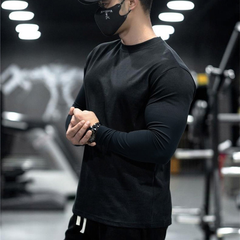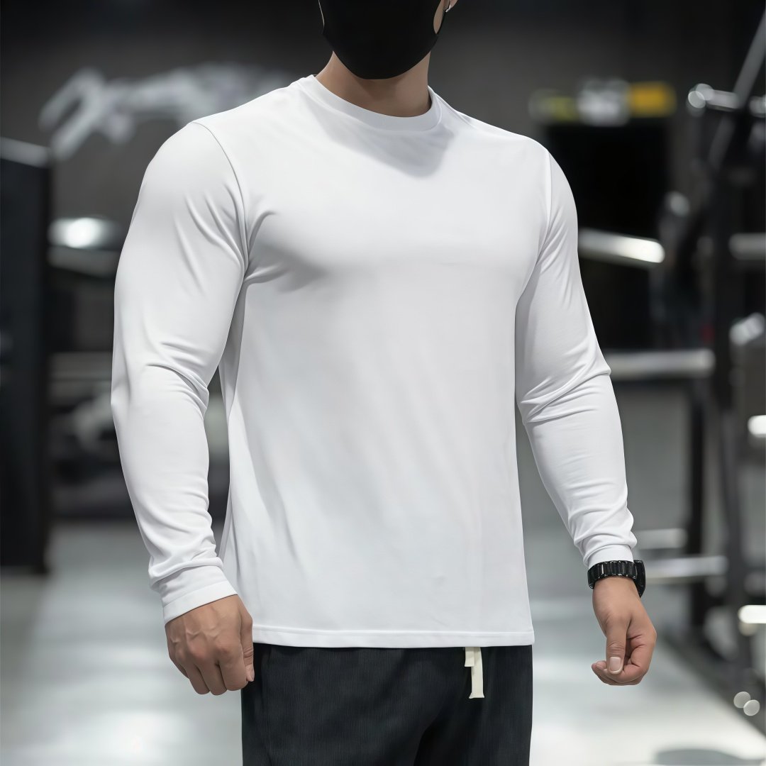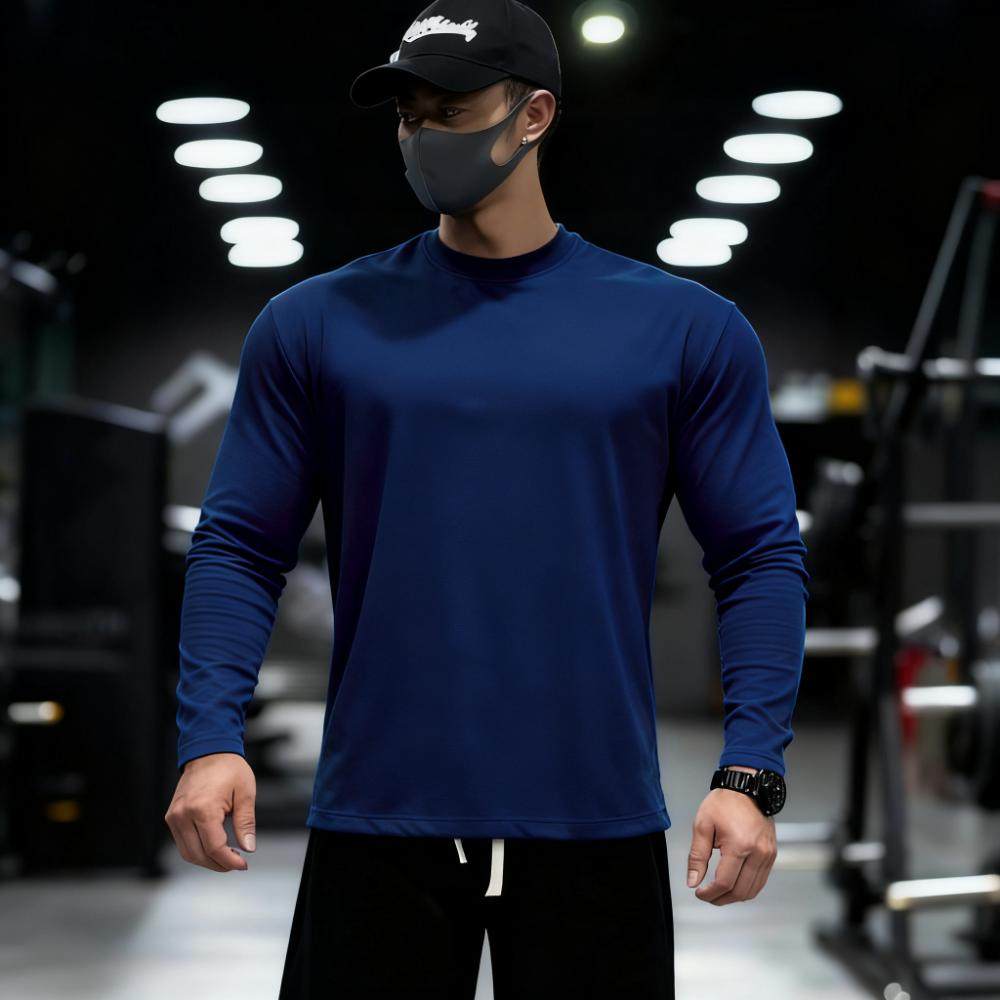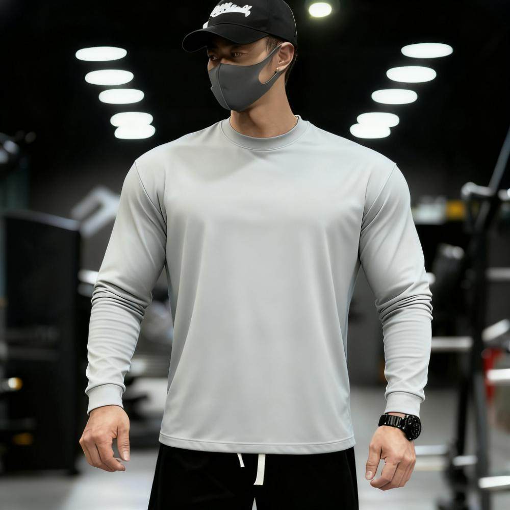 秋冬2025新款透气速干弹力长袖T恤男士跑步健身衣大码运动打底衫