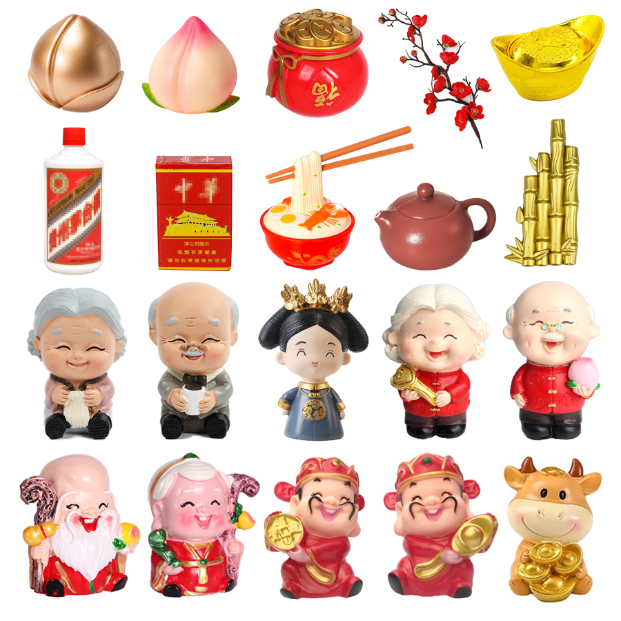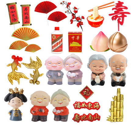 蛋糕摆件装饰寿星折扇中式寿桃烟酒梅花爷爷奶奶老人插件生日祝寿